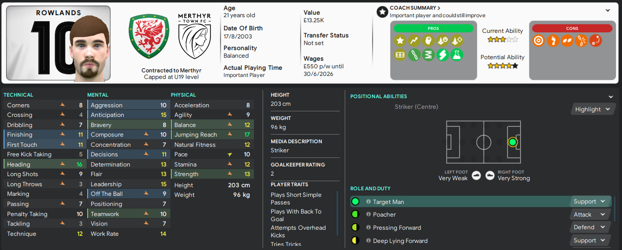 Known for his direct style of play, Montgomery’s faith in Welsh youngsters has been a large factor in his success. The likes of Gareth Evans, Alan Williams, Tivonge Rushesha and of course, club legend Rhydian Rowlands, have been crucial to Merthyr’s success and Montgomery has been applauded for keeping a nucleus of talented, young players at the club for an extended period of time. He’s also not been afraid to look to the Welsh league system for talent, with Rowlands (Airbus UK Broughton), Matt Blake (The New Saints) and Iain Sullivan (Barry Town) all becoming key players for the club in recent seasons.