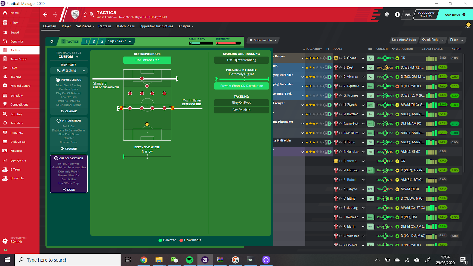 Yes, an Ajax save is not the most original idea. But my main idea was to have a team completely reactive to the opposition. For instance, if we play AZ, I might decide to stop LB Wijndal by playing Mazraoui/Dest/Alvarez in a defensive RM role. To make this happen I essentially wanted each position to have ~3 options. These options are dependent on factors like invertedness, speed, attack/defence.