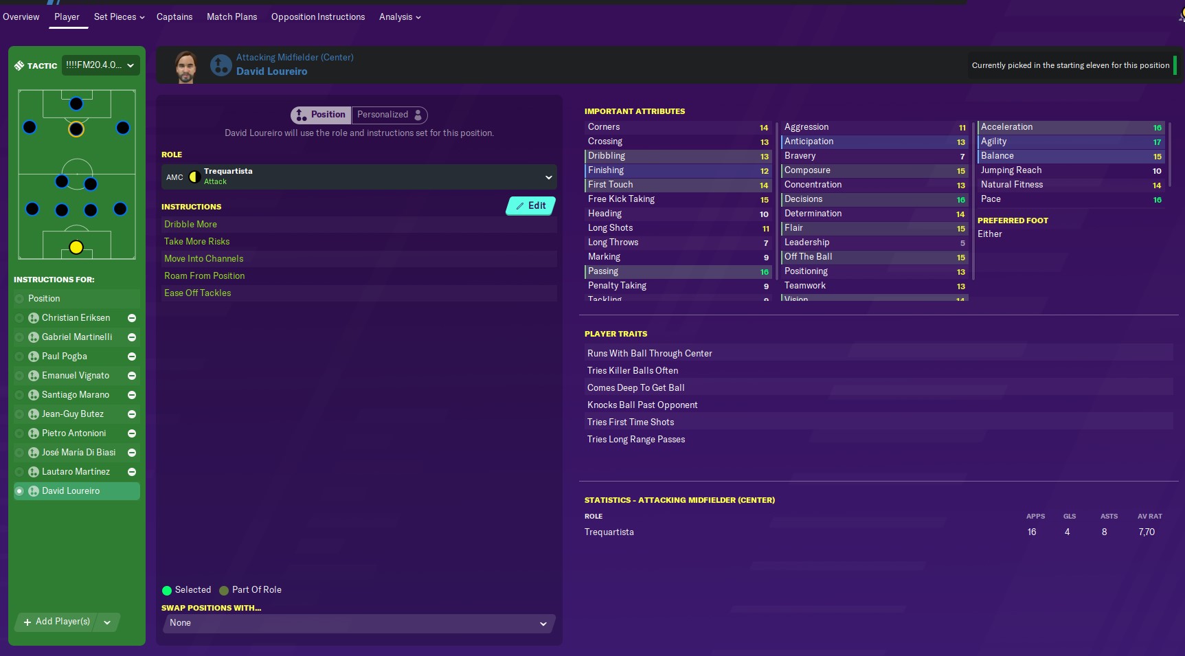 AMC is much better as a Trequartist and the Wingers as an Advanced Playmaker.