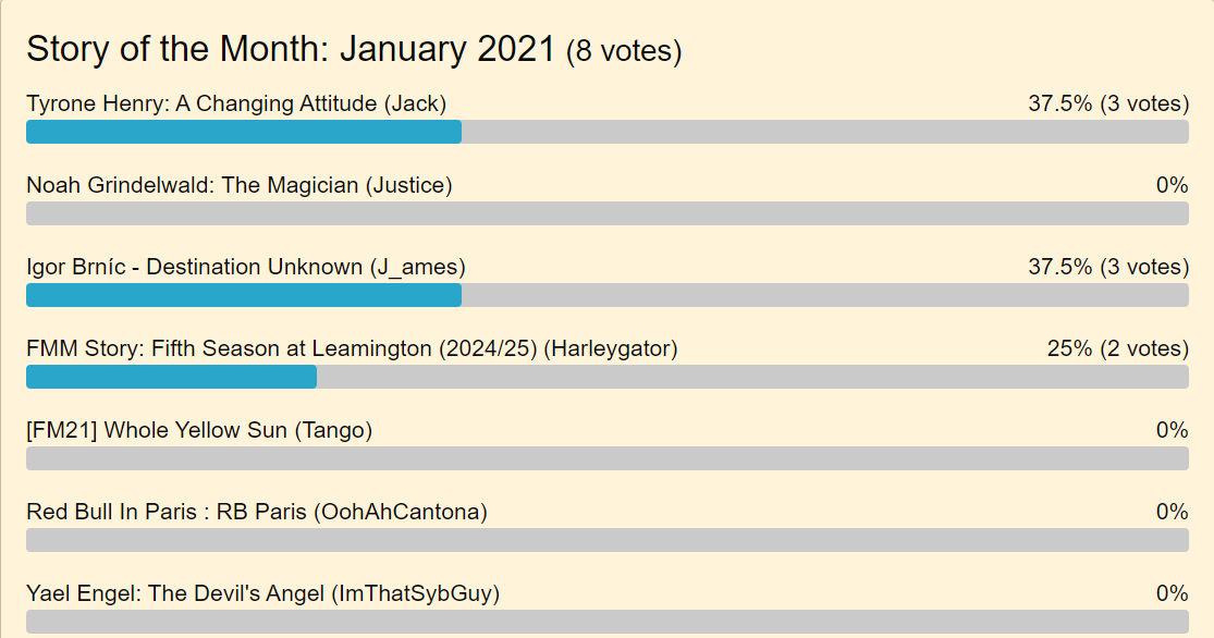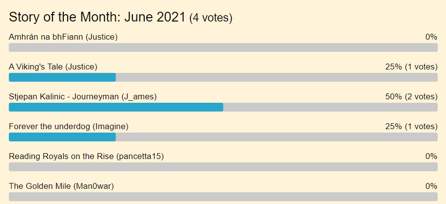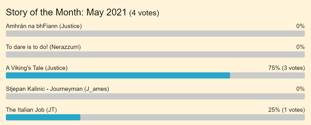 Here, just like last year, we will keep the winners of the Story of the Month competition winners as well as the Story of the Year winner. There will also be a few links to other areas of the site we think will help anyone wishing to start a story.