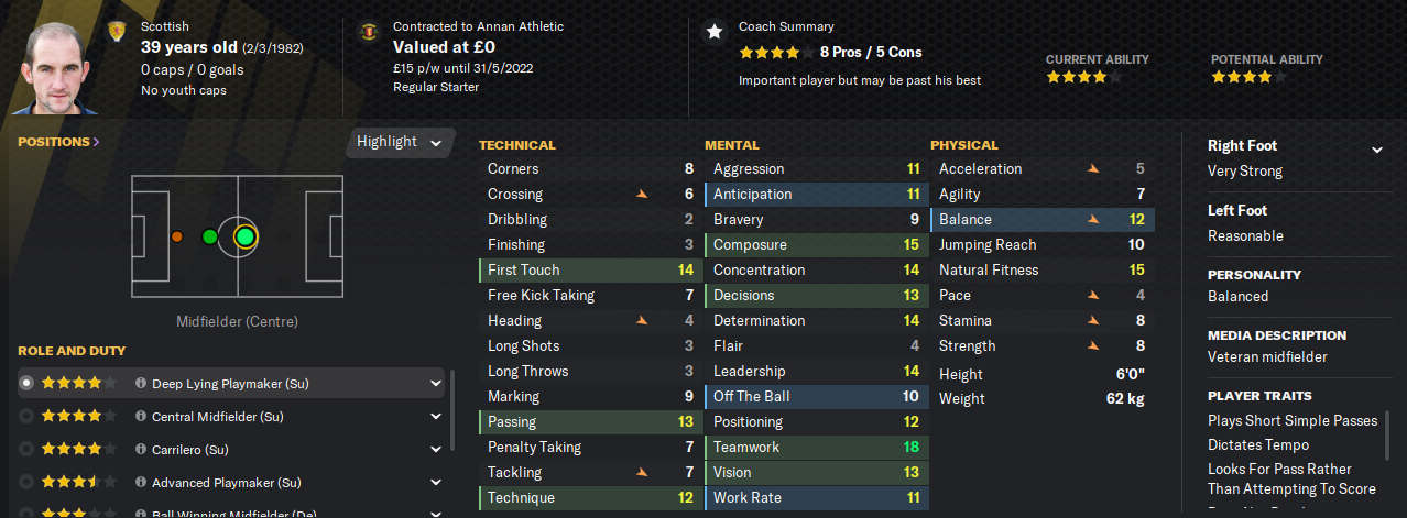 James: Yep! He's retired in real life I believe. He had a brief stint in charge at Ayr but in-game he's still playing albeit this is likely to be his final year. He appears to still have the ability though. As for Matt and Carlo, they're bright young talents that I'm hoping will shine this year.