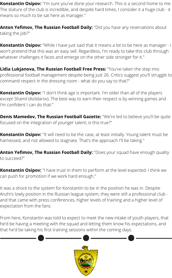 An interesting team selection, I remember the initial days when Anzhi were spending exorbitant amounts. On earlier editions of FM I used to sign Serder Serderov from them, as he was quite highly rated as a youngster, but things just didn't work out for him irl.