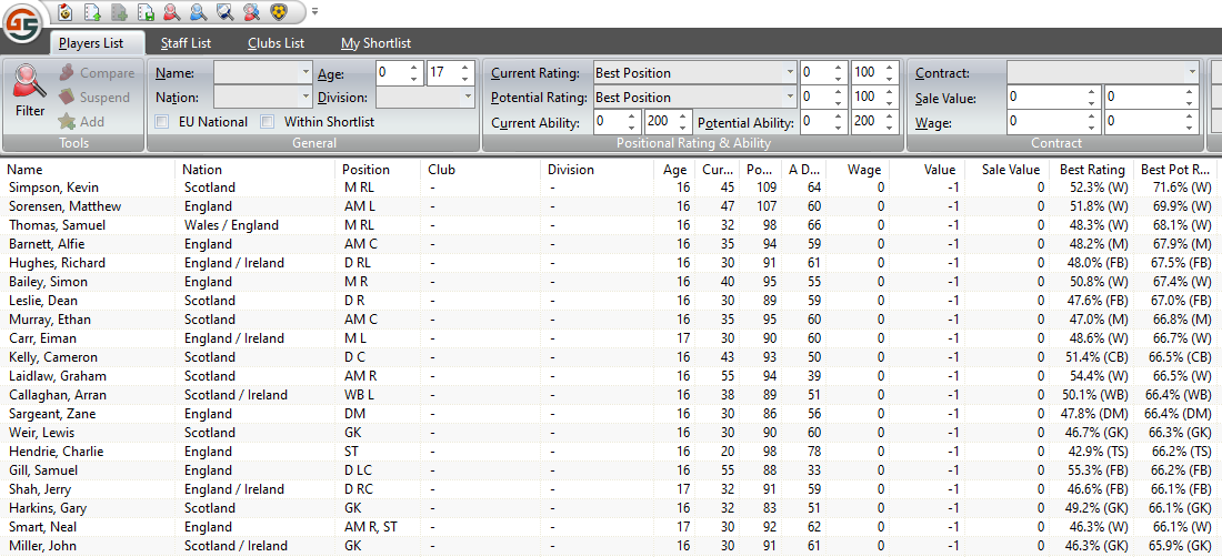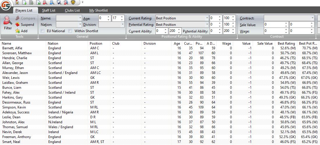 You should save the standard FMGS ratings file before loading and changing this file so you can reload the default if you are not happy with my ratings.