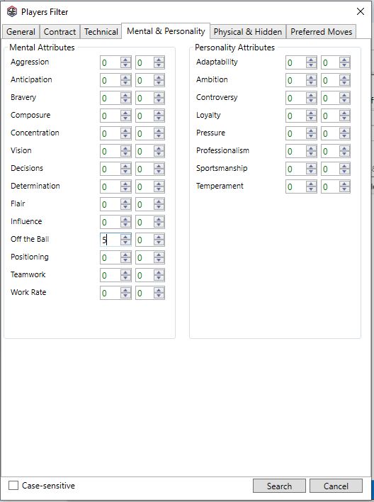 OK. If you set the second column to 0 for Off the Ball instead of 20 you will get what you are after.