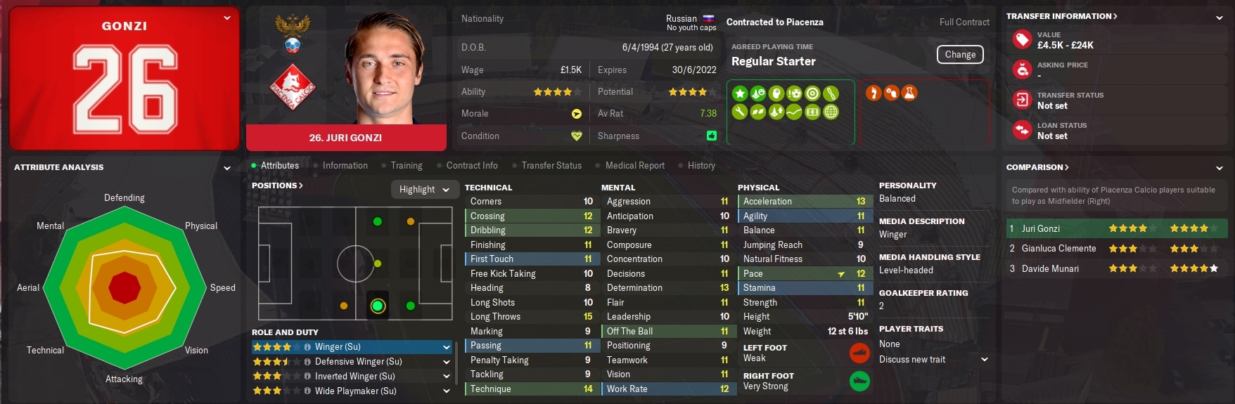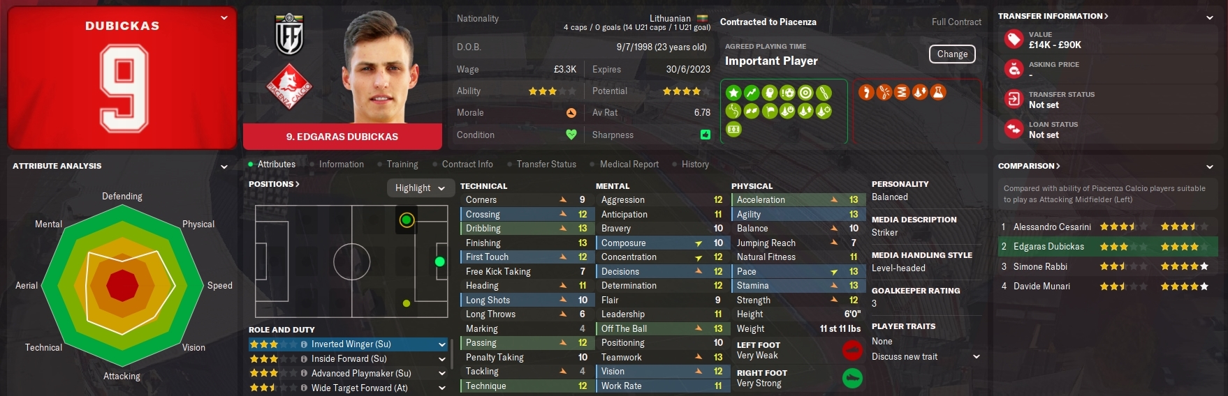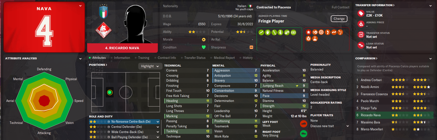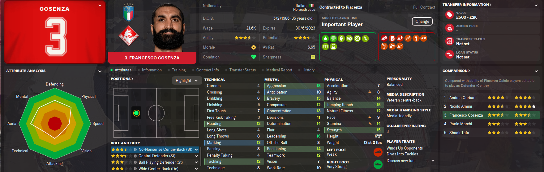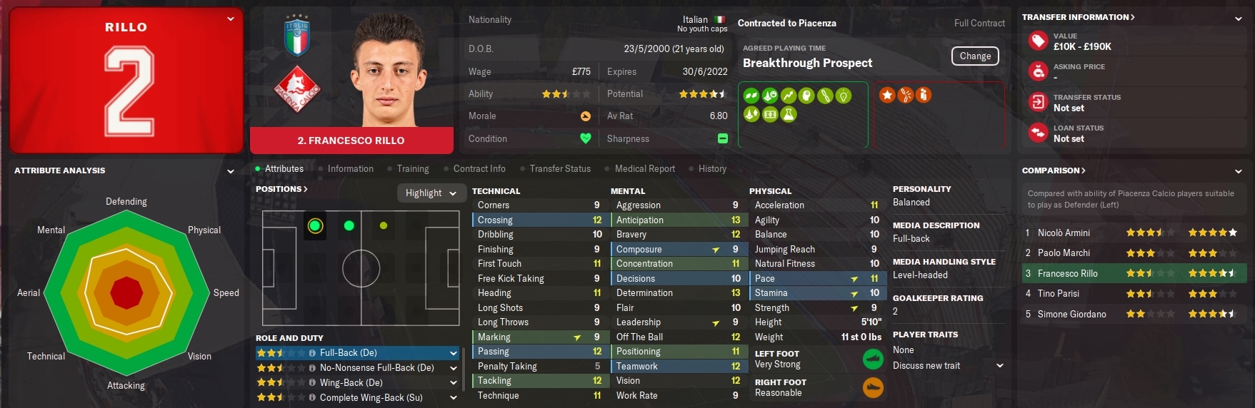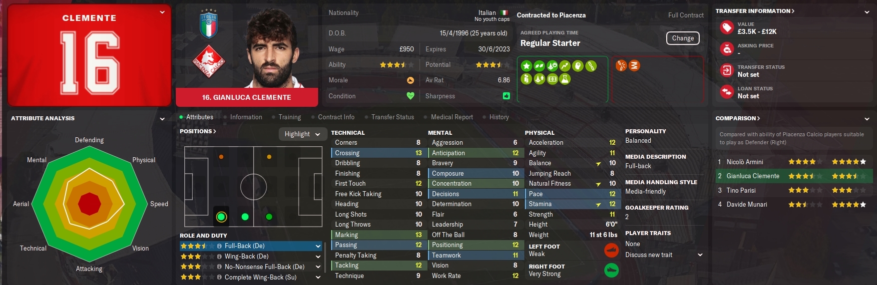 Despite this, Cagni was entrusted to lead the team forward and he remained loyal to his existing squad with very few changes over the summer. This would prove to be a wise decision as Piacenza won Serie B to mark a return to Serie A at the first-time of asking.
