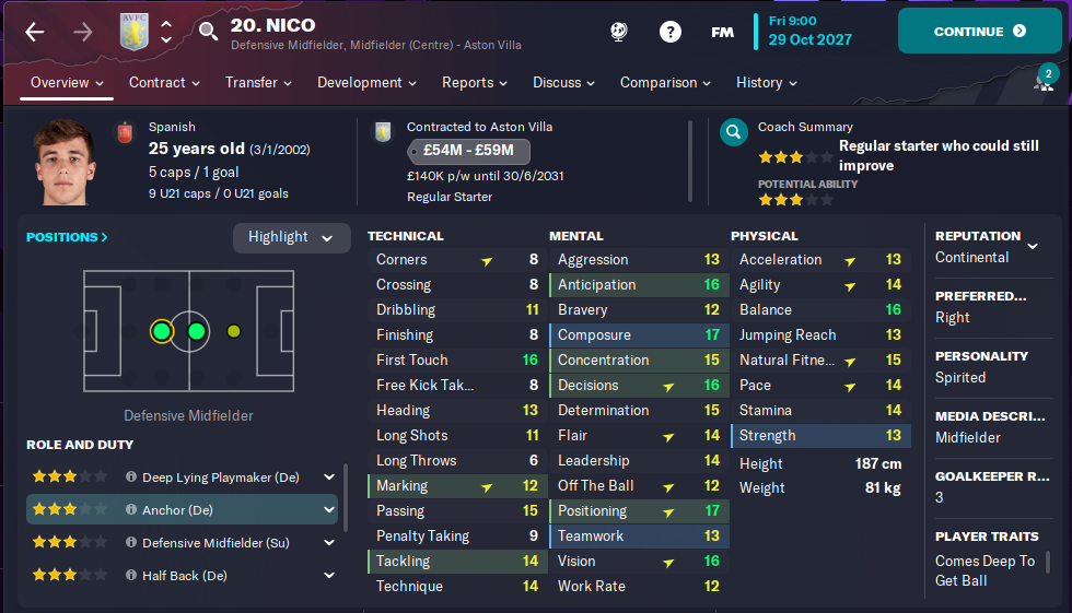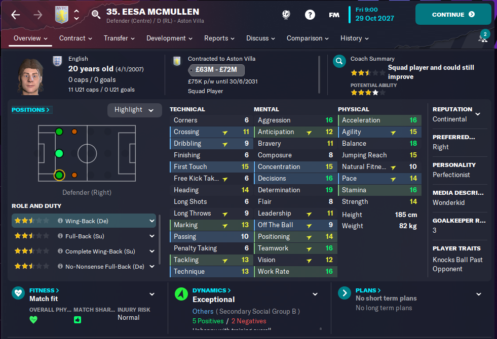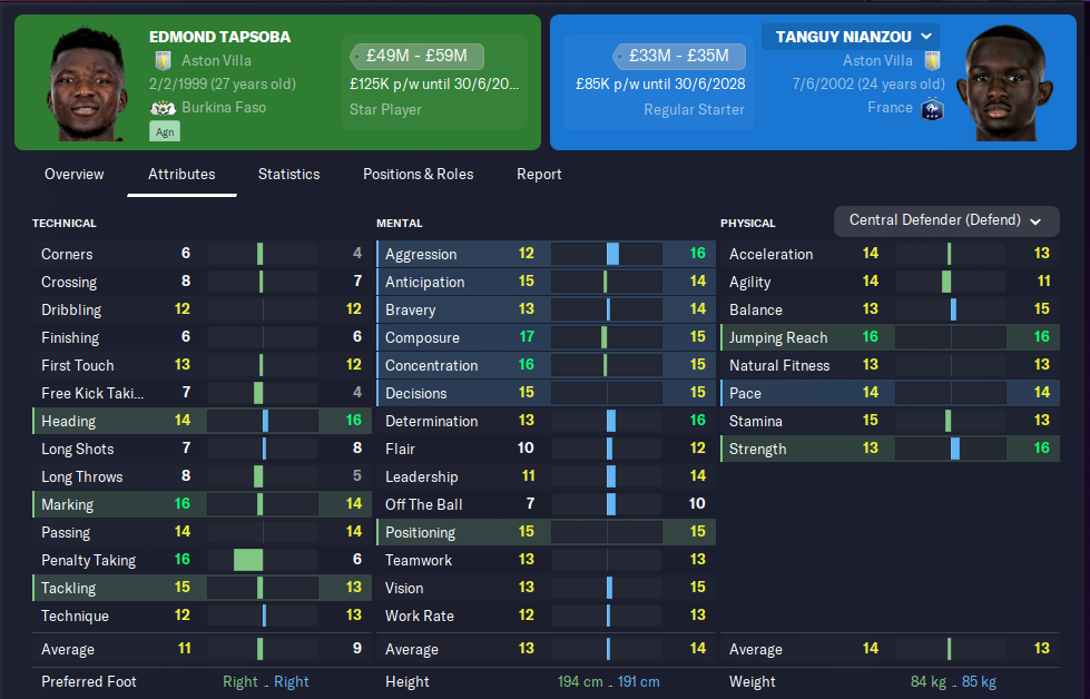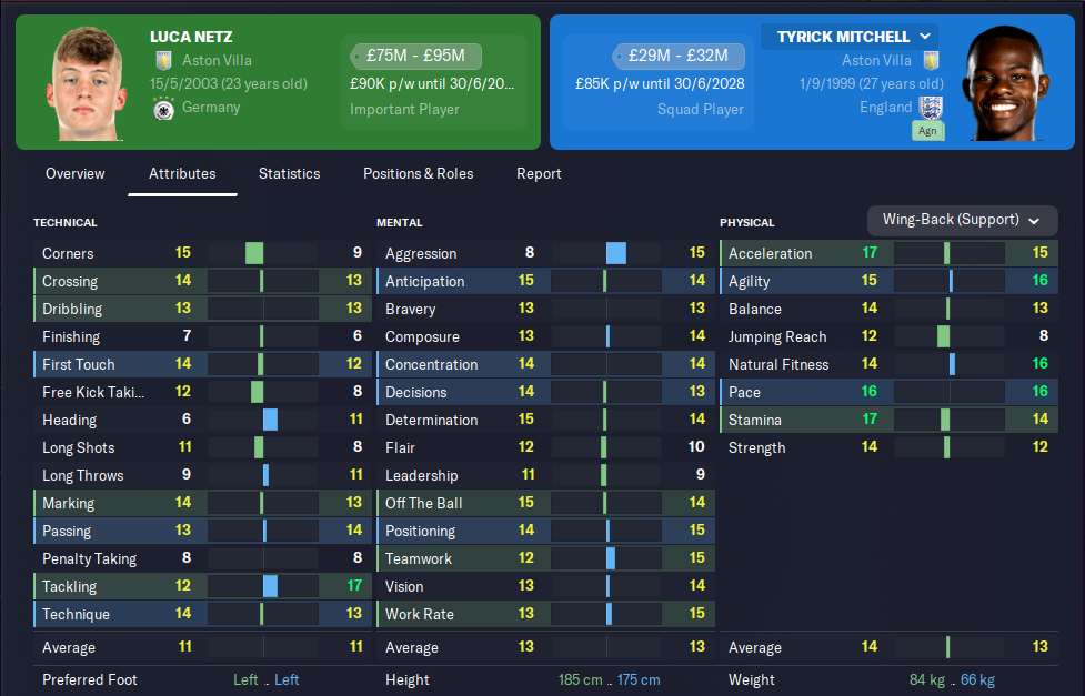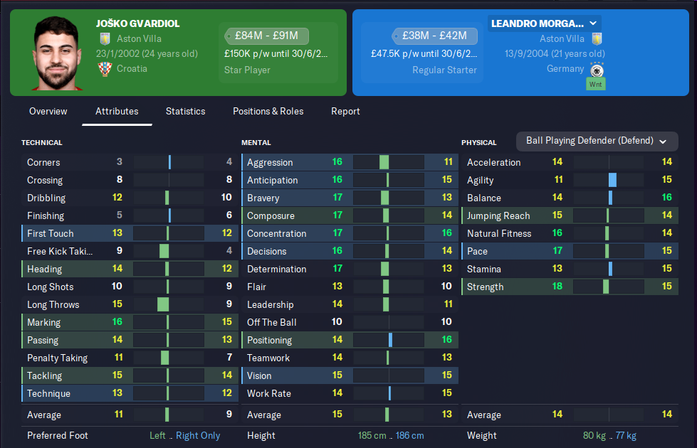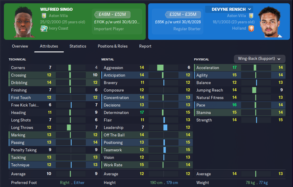 The defence has seen the highest amount of change during my reign at Aston Villa and none of the defenders were with the team when I took over 4 years ago.I reckon I've also spent the highest amount of money on defence. I spoke about Josko Gvardiol on my latest post and he offers us something we have missed. Esmond Tabsoba will be his preferred partner, although Tangou Nianzou and Leandro Morgalla are great players on their own right as well. Luca Netz and Wilfried Singo have taken the starting full back roles to themselves as Tyrick Mitchell and Devyne Rensch offer decent back-up options. My wing backs aren't as attacking as Liverpool's, but they offer something going forward at least and I can tailor their roles going forward.