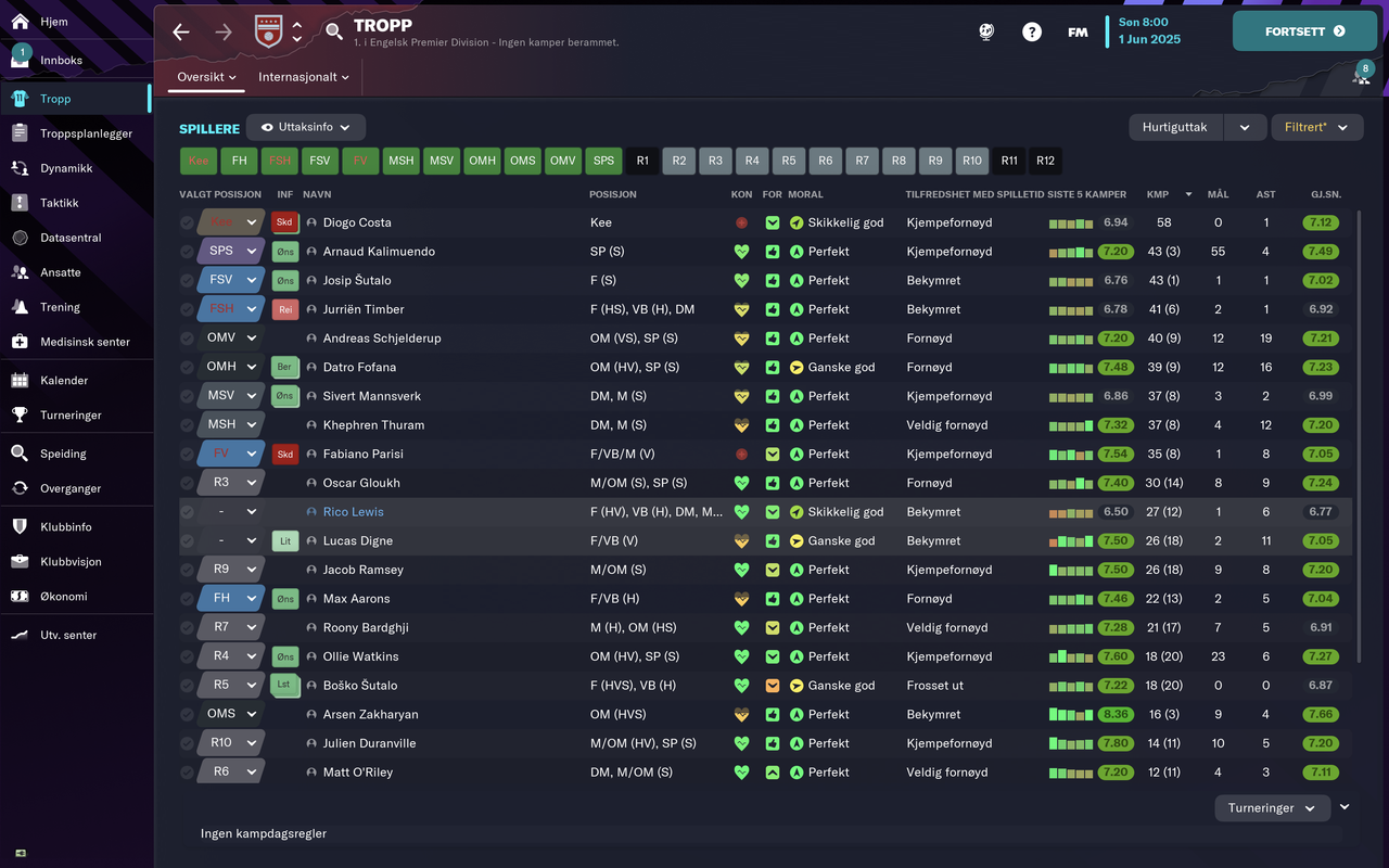 Going for the PL-hatrick next season. No big players coming in in the summer, new RB & CB next priority. But I have enough cash to buy big if the right player comes my way.