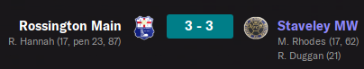 Rossington started the day in 4th, it was always going to be a tough game for us so we adopted a more defensive approach, we saw one of the goals of the season from Rhodes a first-time volley from 20 yards looping over the keeper for a leveller. An incredible game and a draw was probably a fair result, Ross Hannah having a superb game. We're now 5 points behind Parkgate