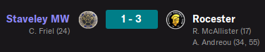 A huge top-of-the-table clash as both teams come into the game with 100% records, us being top on the fact we've scored one more goal than them. A huge error from Crosher gave them the lead going into halftime and we never really looked like getting back into the game until the final minute of the game. Brown came rushing off his line and headed to Knowles who just needed to take a touch then roll it into an empty net, proceeded to volley first time well wide and we lose our first game.