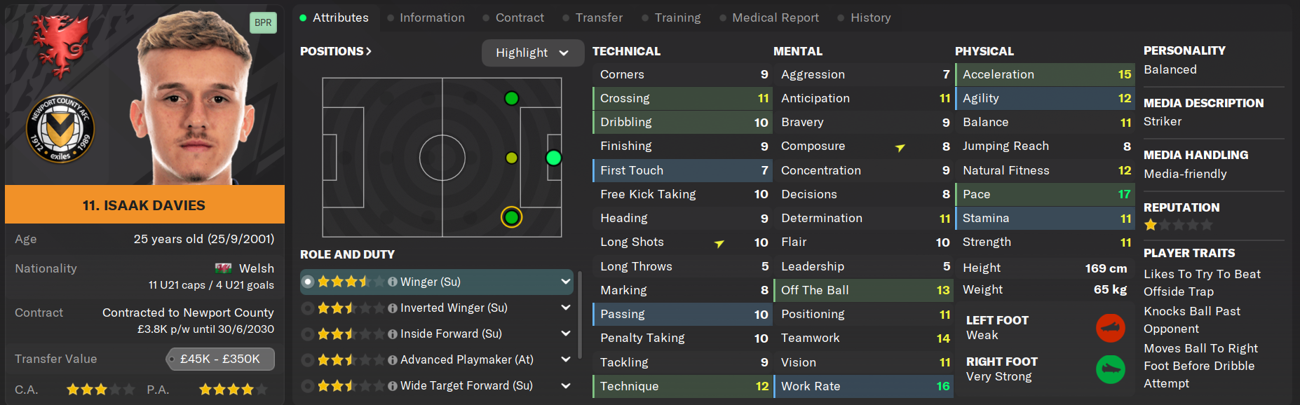 What Isaak Davies may lack in terms of technical ability is more than made up for by his rapid pace and his work ethic, making him a thorn in the side of any press-sensitive defense. He has a reasonable amount of Championship experience with Cardiff but his role at the club isn't clear at this point in time, apart from being available to play across both wings and up front.
