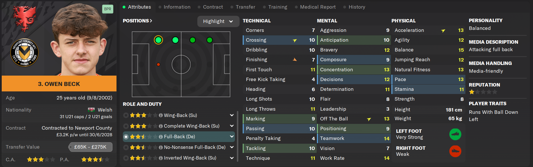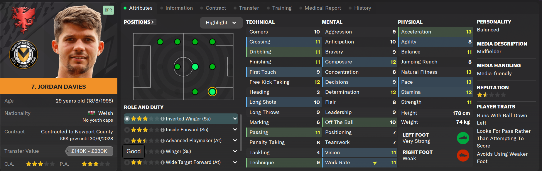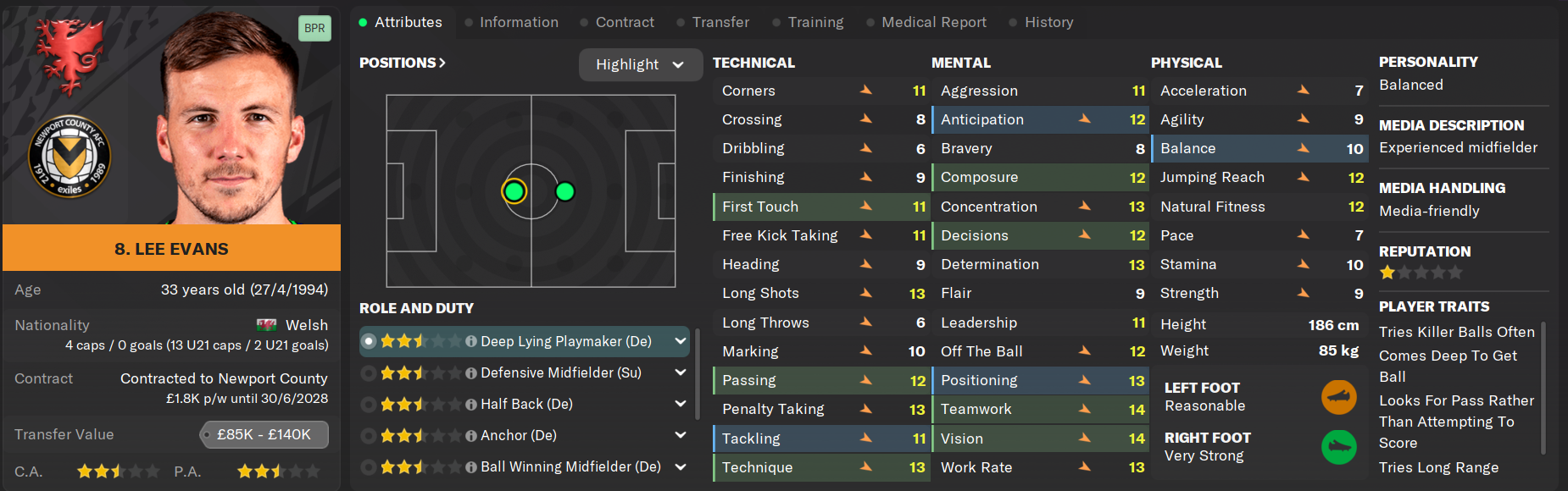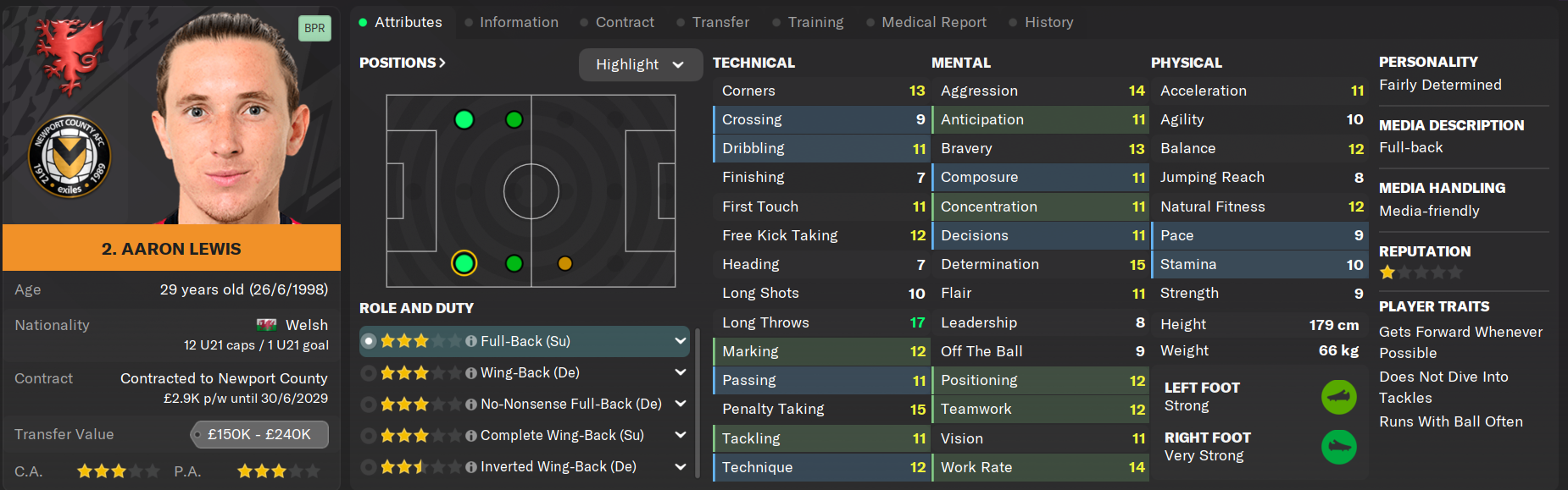 Now coming up on his eighth season at Rodney Parade, Aaron Lewis has played 275 games for the club and is seen as one of the leaders of the squad despite not holding a captaincy spot. Lewis' ability to neuter Championship-level wingers has been questioned heavily over the off-season but his versatility and nous still makes him a valuable option for the squad. Lewis is also a dead-eye from the penalty spot, contributing heavily to his eighteen goals under Montgomery.
