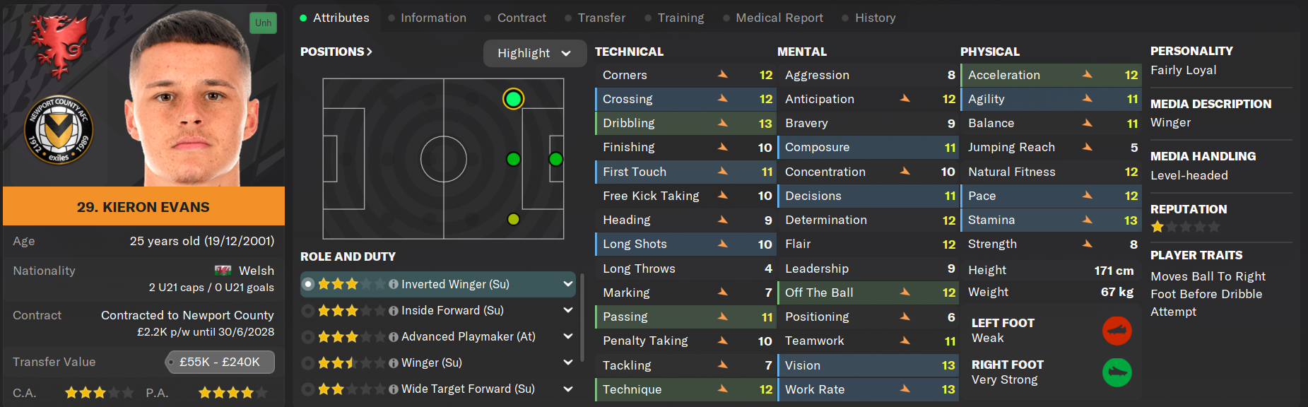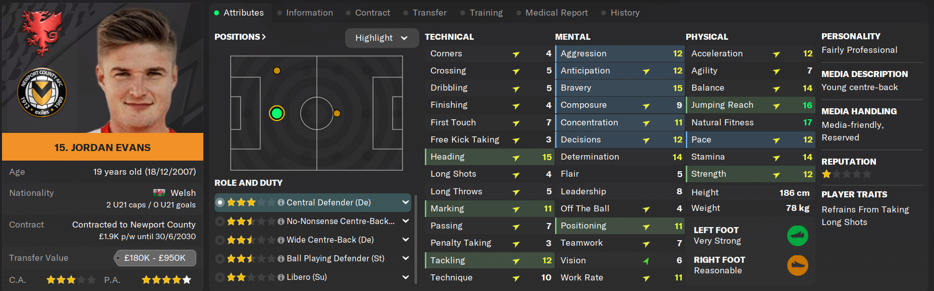 Kieron Evans started his Newport County career incredibly well after a £200k move from Cardiff City, but his form tapered away as the season went on and was replaced in the starting eleven by Paul Mullin. Evans has reportedly had a falling out with management over the myriad of attacking signings this season which may push him further out of first team considerations.