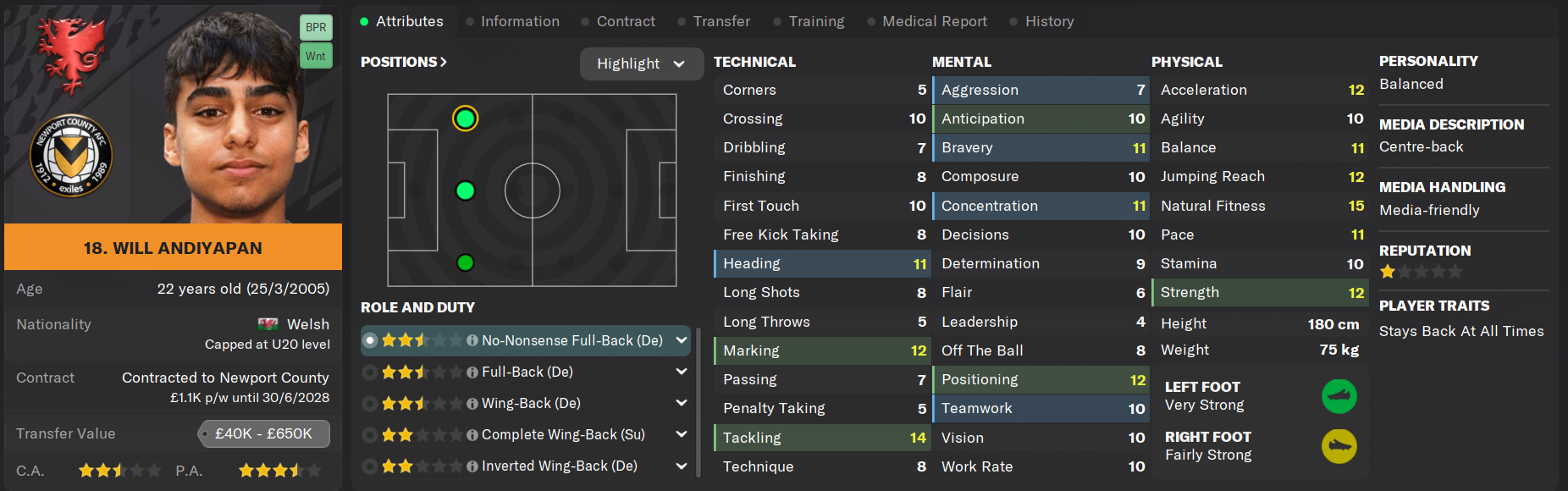 Will Andiyapan has not quite developed into the top-string centre back people had hoped of him when he was at Tottenham Hotspur, but he has been a reliable servant for Newport County over the past three seasons and his versatility has been a helpful tool in rotating the squad. His lack of physical presence could hinder his chances of playing too much this season but he has the fundamentals down to do a job and his tackling in particular is renowned.