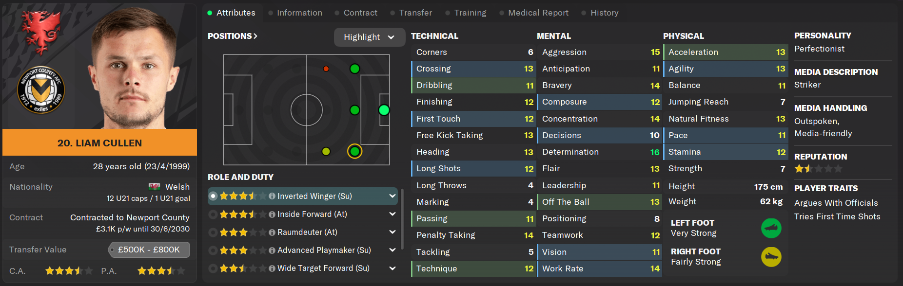 The third player to be poached from rivals Wrexham in recent memory, Liam Cullen has been a target for the club for a number of years and will finally be under Hugo Montgomery's stewardship this season. Although more comfortable as a striker, much like Davies and Mullin he will be employed on a wing where his above average crossing and acceleration can be utiilised.