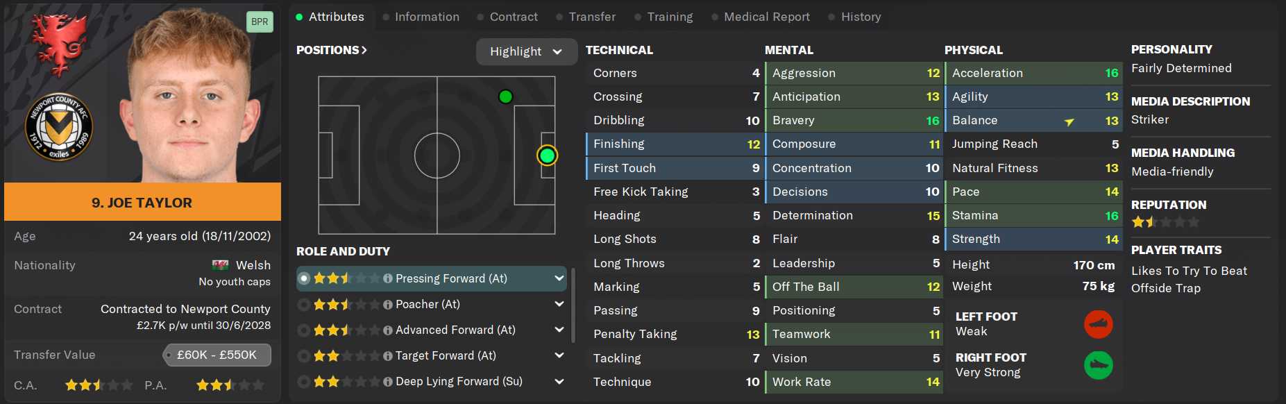 Few Newport County players have had so many inches of editorial space dedicated to them than Joe Taylor, first due to his heroic goalscoring efforts and then due to his struggles for regular first team action when the club seemed to be prioritising the development of Owen Jones. Taylor remains a lethal finisher and one of the quickest players in the Championship and is the top scorer in Newport County history with 128 goals in 189 appearances.