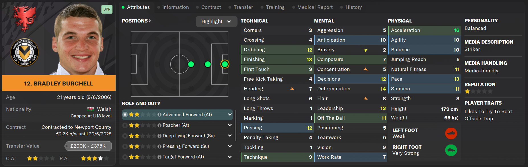 Bradley Burchell remains one of the rawest prospects at the club and even three years after making his debut it is unclear what kind of future he'll be able to carve out at this level. But Burchell has stepped up to every challenge thrown at him in his brief career to date, and last season if not for injuries could have been lauded as one of League One's top attacking players. He racked up four goals and nine assists in just 21 appearances which has earnt him a place in the squad.