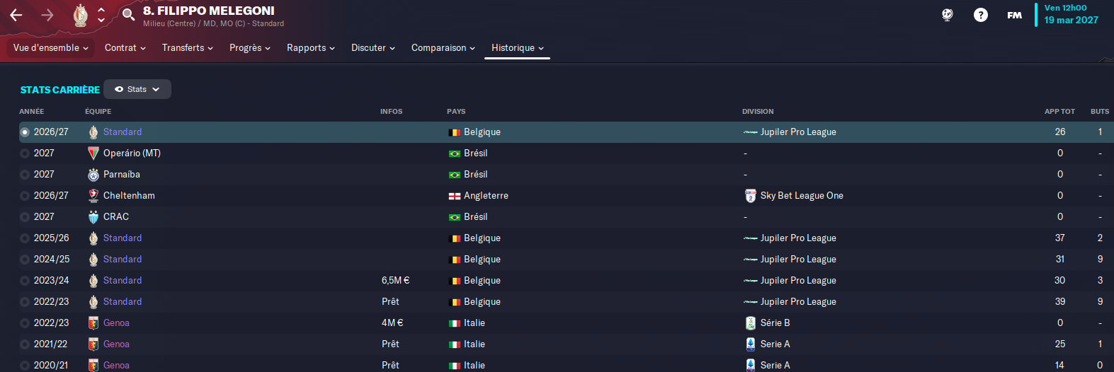 You can see it in the attached picture : As an example : We are in the 2026-2027 season and the history of my CM Melegoni is mentioning that he plays also for Cheltenham in 2026-2027, but also brazilian clubs CRAC, Parnaiba and Afogados in 2027.
