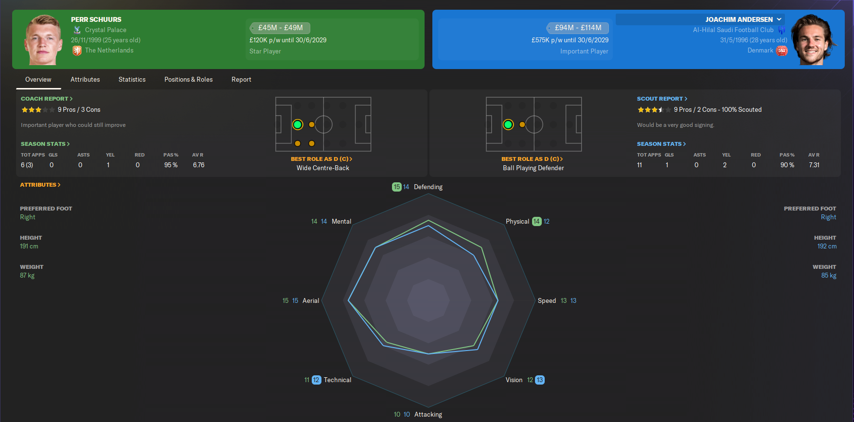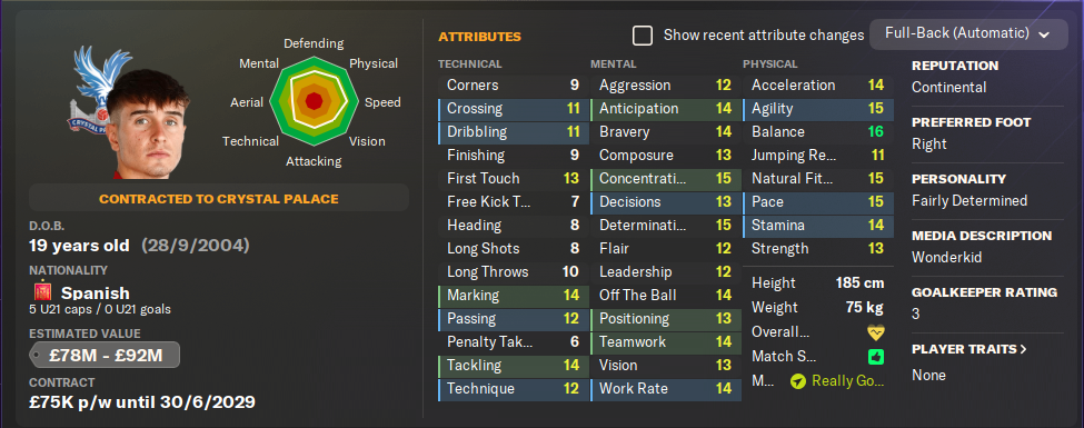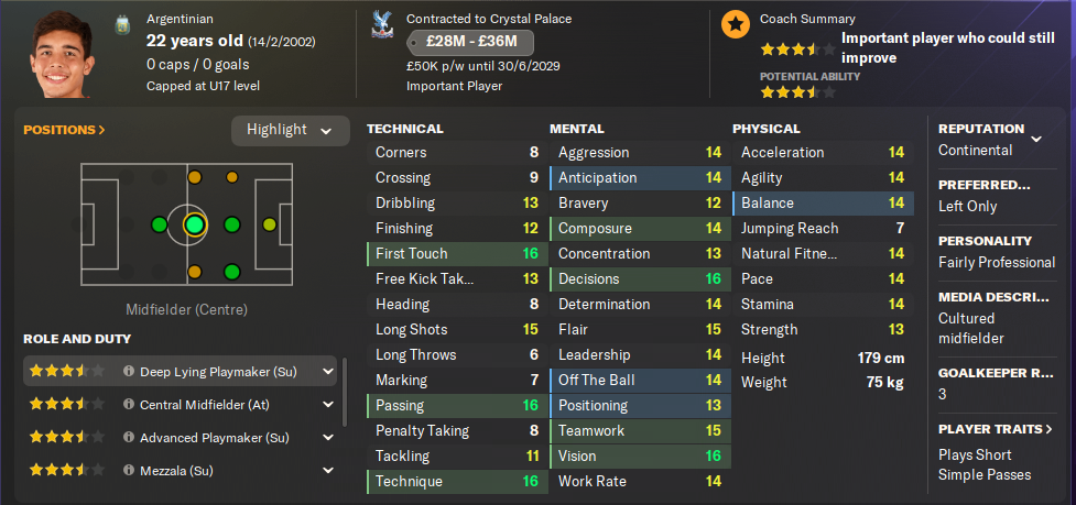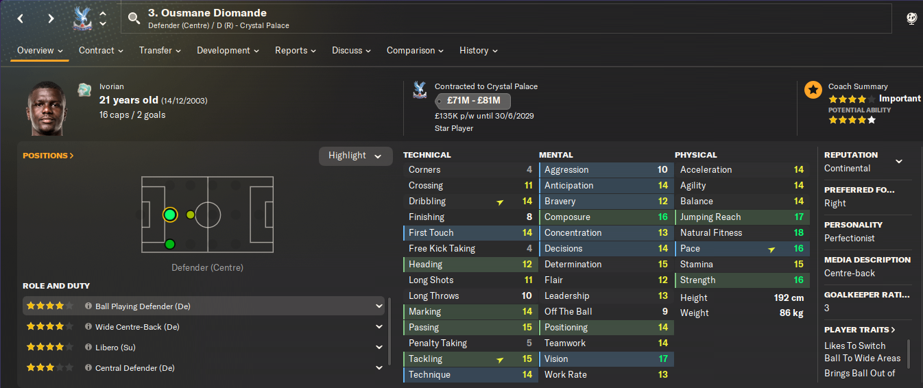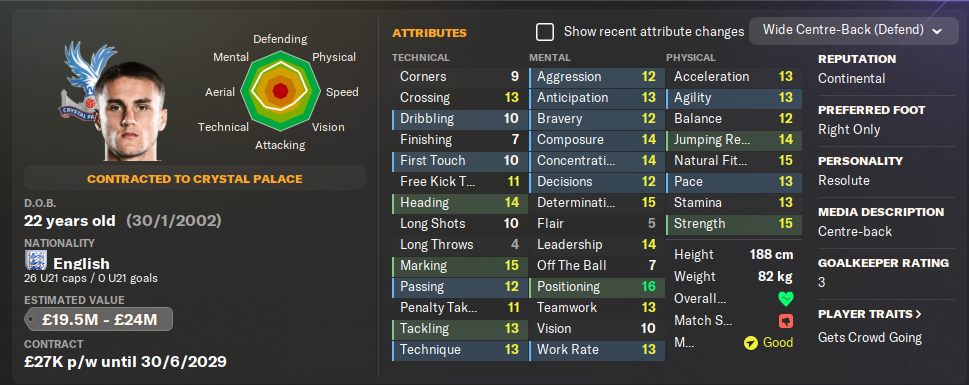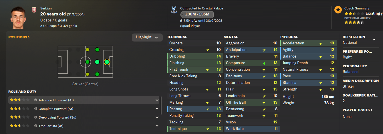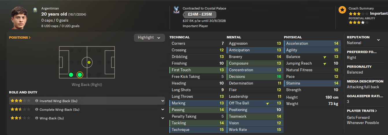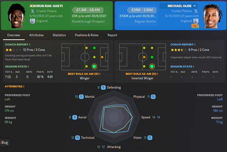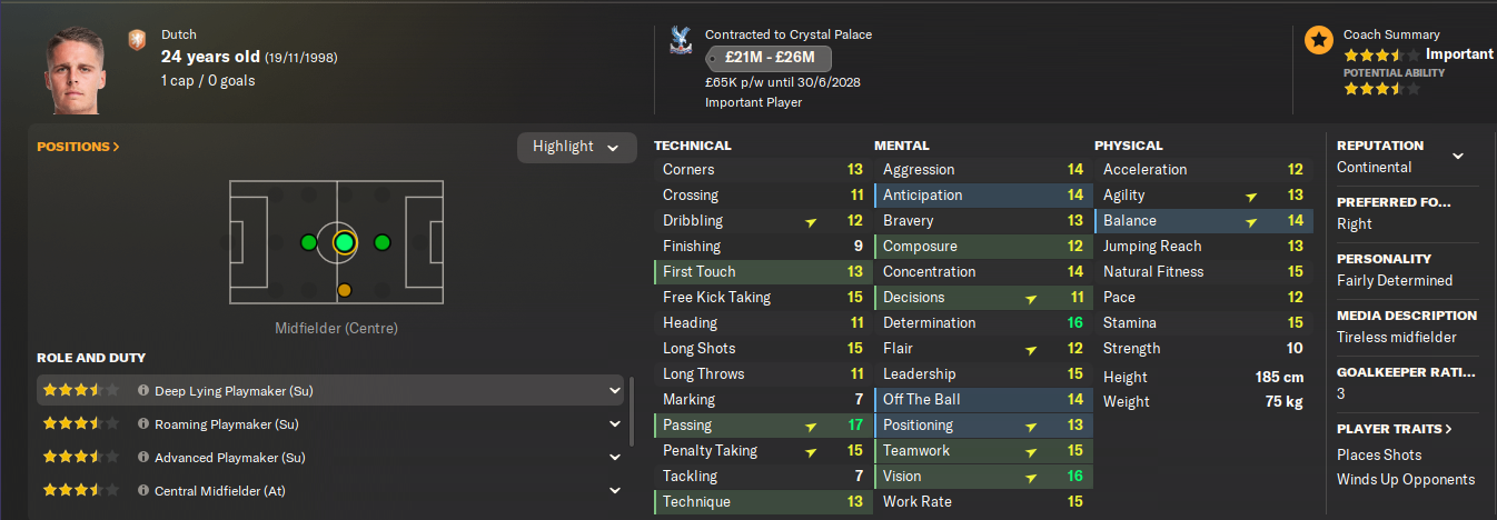 Simply put, he is our best player. The 24-year-old Englishman possesses the technical abilities of Olise but is a more well-rounded player. With relatively high attributes in finishing and long shots, we’ll need him to score some goals as well, while Olise leans more towards being a creator.