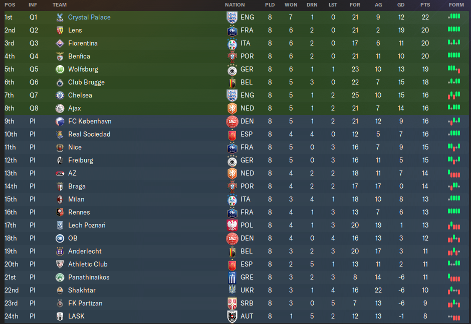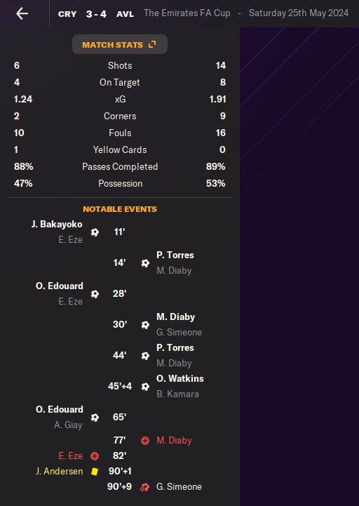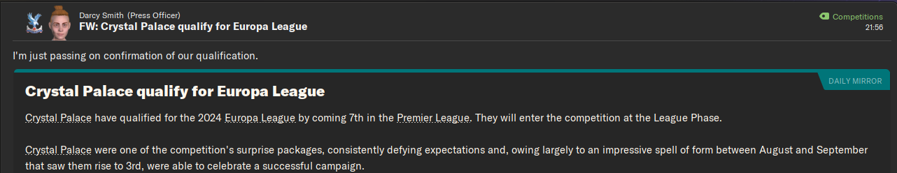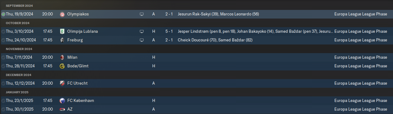 While the main and only goal for the series is to have fun, I plan to achieve this by implementing an attractive style of football and striving for European qualification in the first or second season.