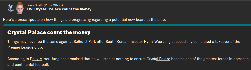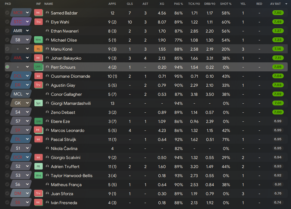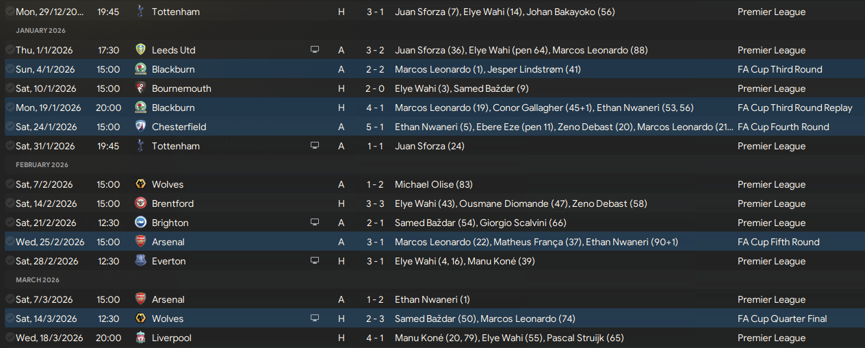 While we maintained strong form domestically, we were surprised in France as Rennes defeated us 2-0 in the first leg of our R16 match-up. Considering the expected goals, a 1-2 scoreline would have been a fairer result, so I wasn't overly concerned about the outcome. As anticipated, we delivered a decisive 4-0 victory when Rennes visited Selhurst Park, with their former player Adrien Truffert dealing the final blow.