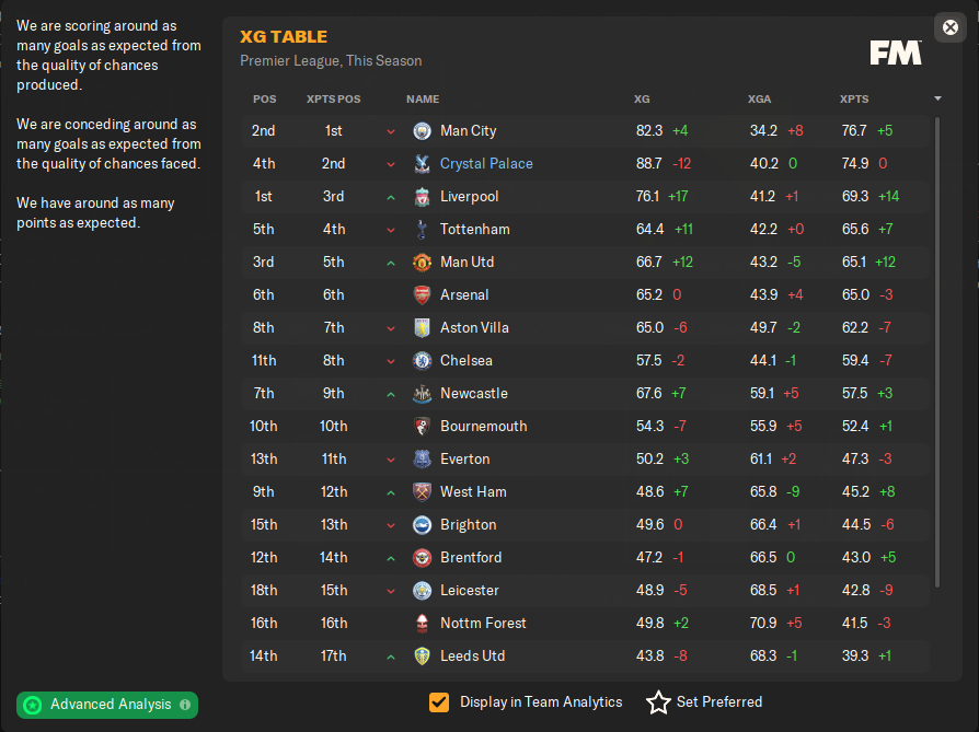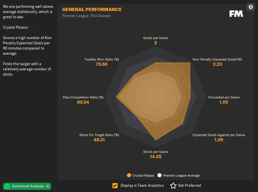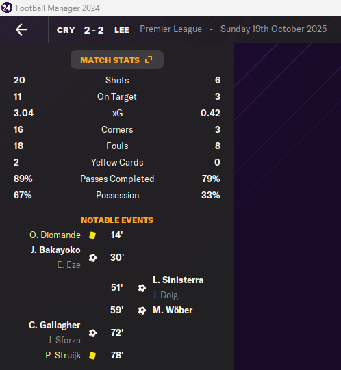In the semi-finals, we faced Athletic Bilbao at their San Mamés stadium, where the eventual UEL final would take place. Our initial match in Basque country concluded in a relatively uneventful 1-1 draw. Despite dominant performances earlier in the tournament, I briefly wondered if we had finally met our match. However, Selhurst Park once again proved to be the difference-maker as we secured a 3-1 victory in our home game. While Athletic proved to be a formidable opponent, but when you deliver an xG of over 4.0 in the decisive match, more often than not you come out on top.
