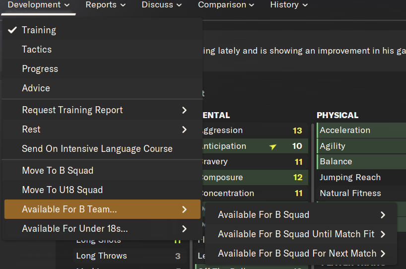 I seem to have made some first team players available for the B team for Rangers for the entire season. Does anyone know how to make them unavailable?