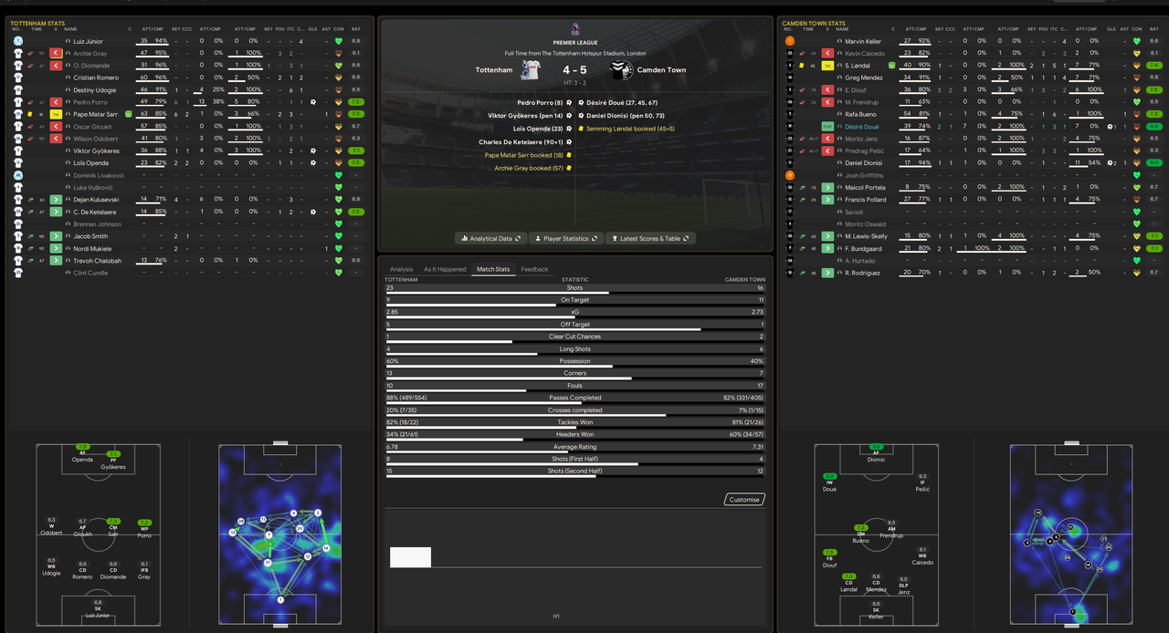 I have decided to stick to fm 24 and still playing my save with Camden Town (created club). I have recently play again spurs and after 23 minutes It was 3-0. I have made changes to my tactics and won 4-5.
