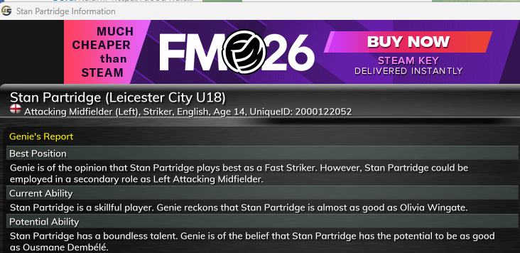 Could you add a checkbox or a dropdown, or maybe a setting to choose the CA and PA comparison with male and female options? Because when I run Genie’s report, the data is mixed between men and women, and it makes me confused. I don’t watch women’s football that much, so I can’t compare,
