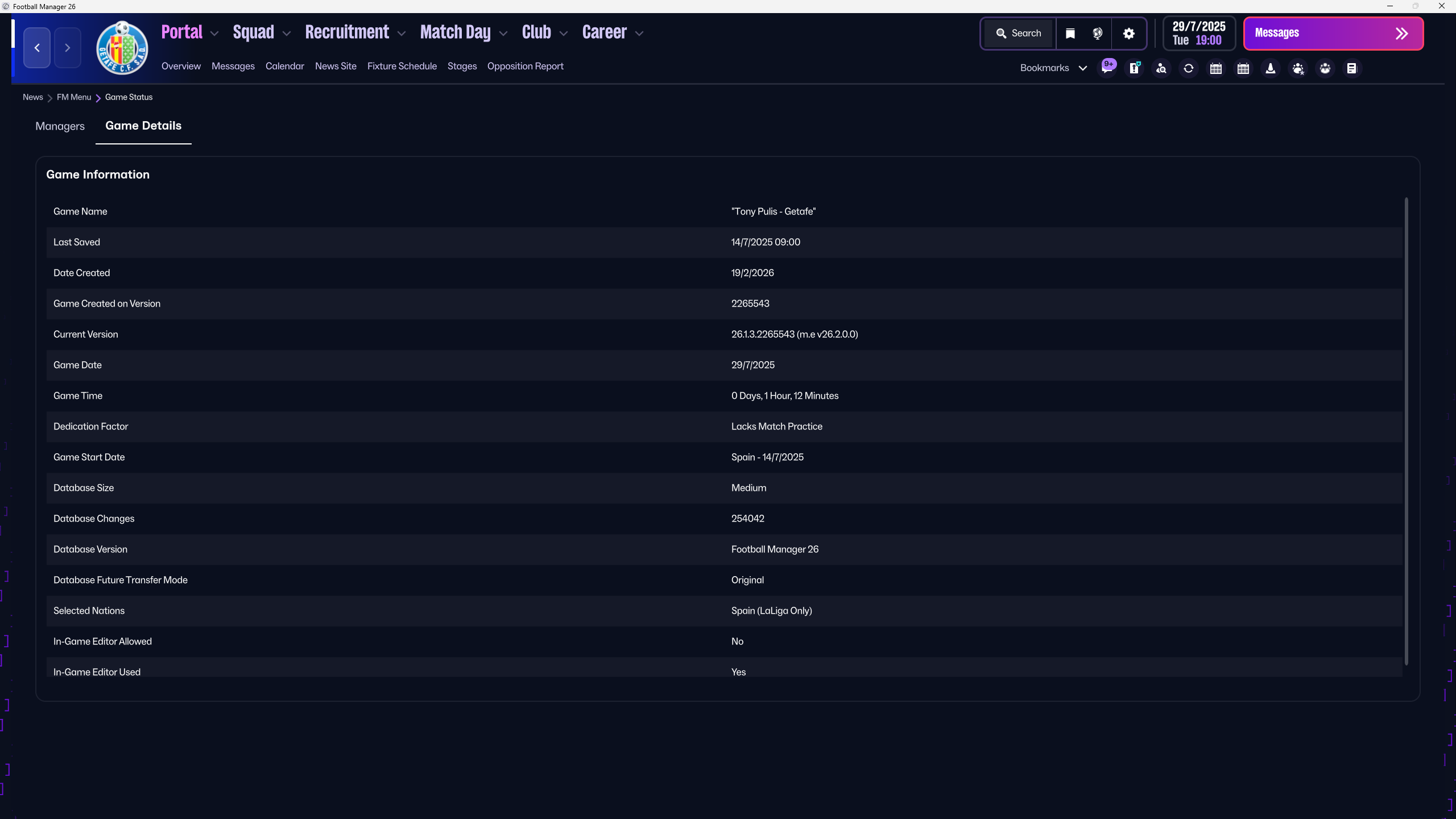 So as soon as I choose a team, before I press anything if I go to game status it shows as in game editor used.