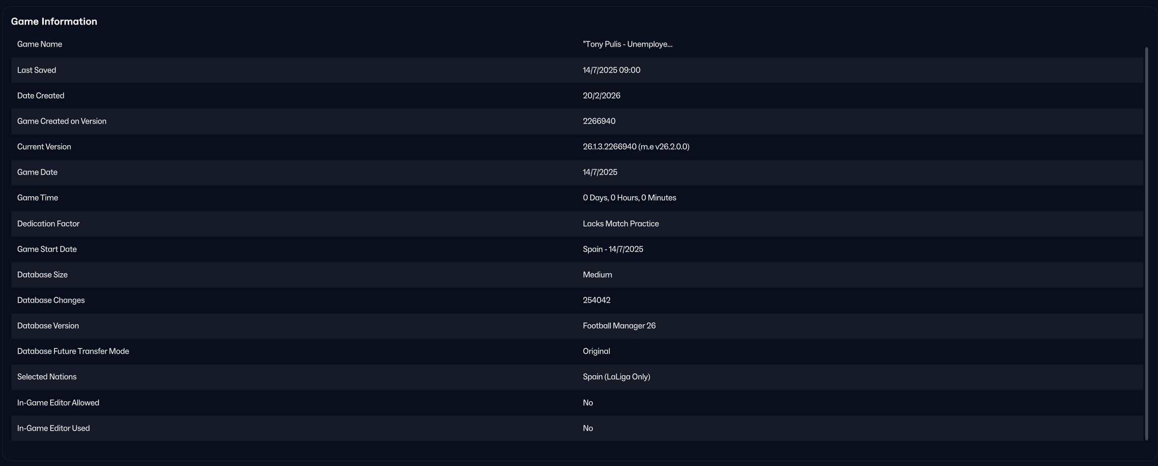 I have check all my recent save including the Dover and Man City tactics testing and non of them show editor used.