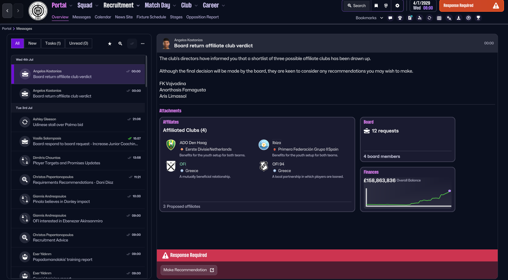 My save wont let me continue as 'response required' - i asked my board for new affiliates - then i get 2 news items asking if i want to select affiliate.