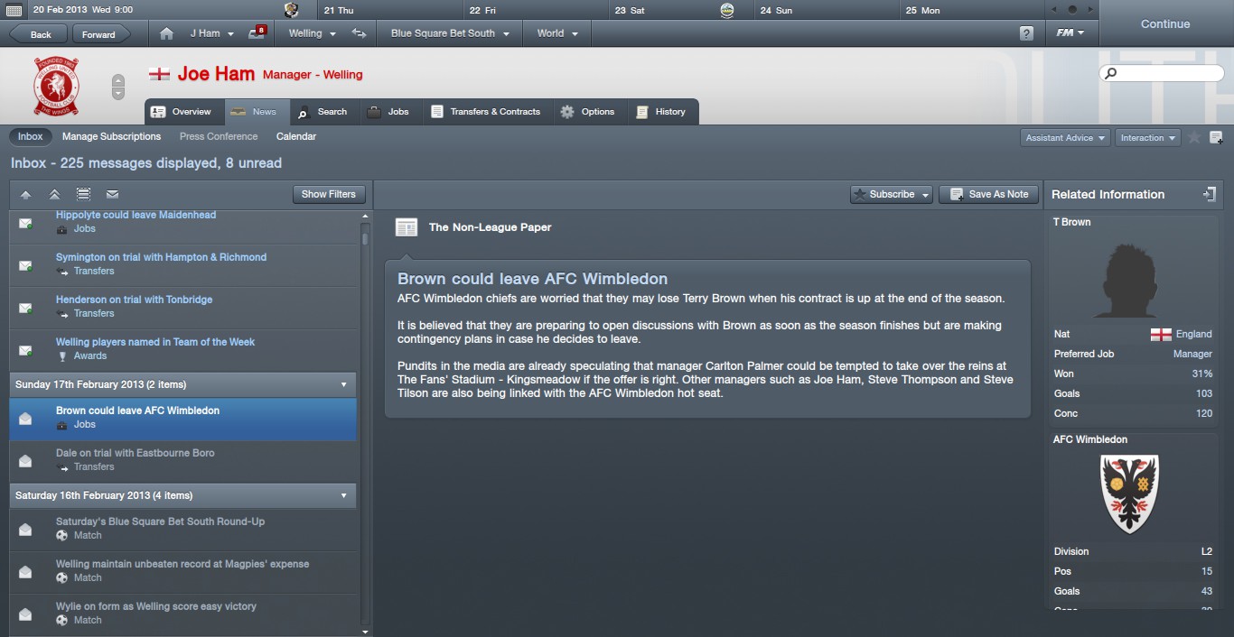 I'm no expert in England lower leagues, but it seems you're doing a great job, and attracting some bigger club interest! Fingers crossed for a big move :)
