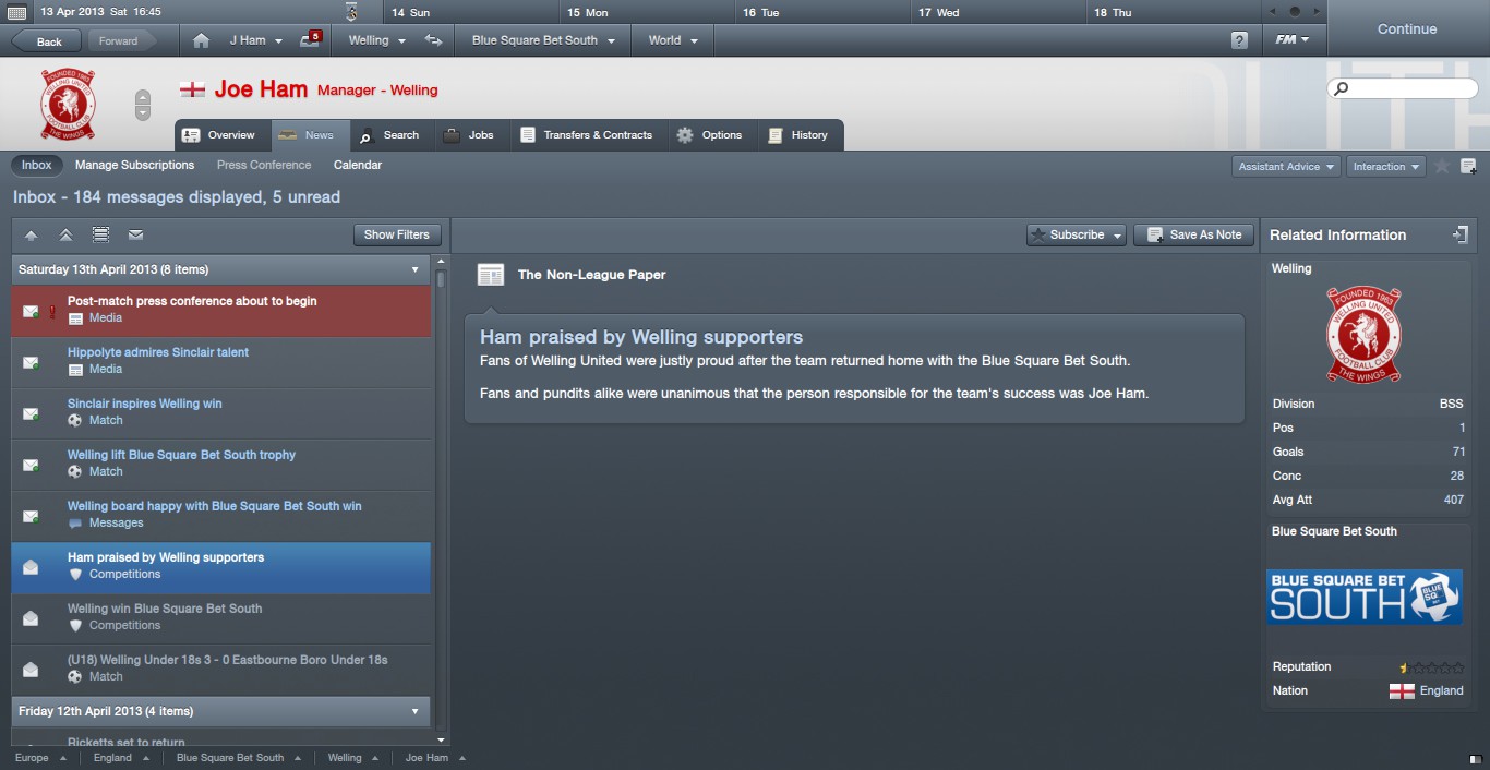 Doing nice, I'm thinking of doing a Blue Square team after I've done this season with Q.P.R, I'm sure I could manage to do both over the course of the next few weeks.