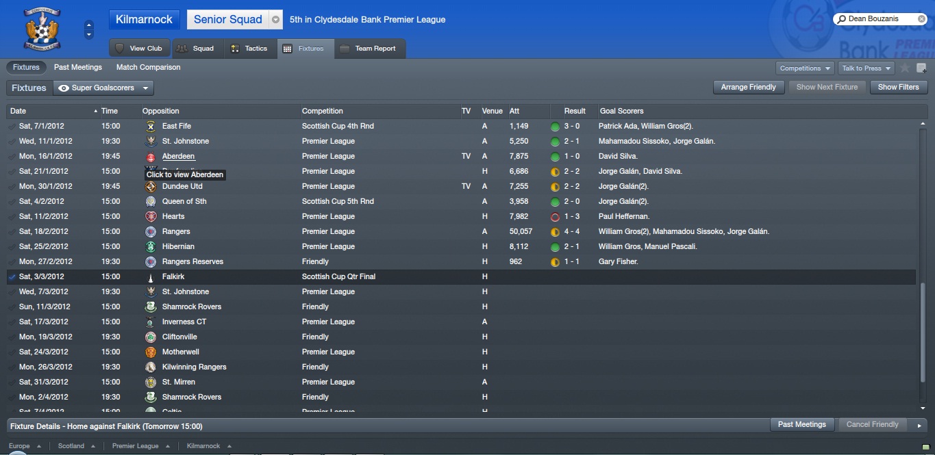 February wasn't a great month but it was certainly better than some of the others this season. In all competitions we played 5 games. We won two, the Scottish Cup match against Queen of the South, and a league game against Hibernian. We also drew two of our games, against Rangers (4-4) and a 1-1 draw in a friendly against the Rangers reserve squad which was arranged just to make a bit extra cash. We did however lose a game, that we probably should have done better in, against Hearts.