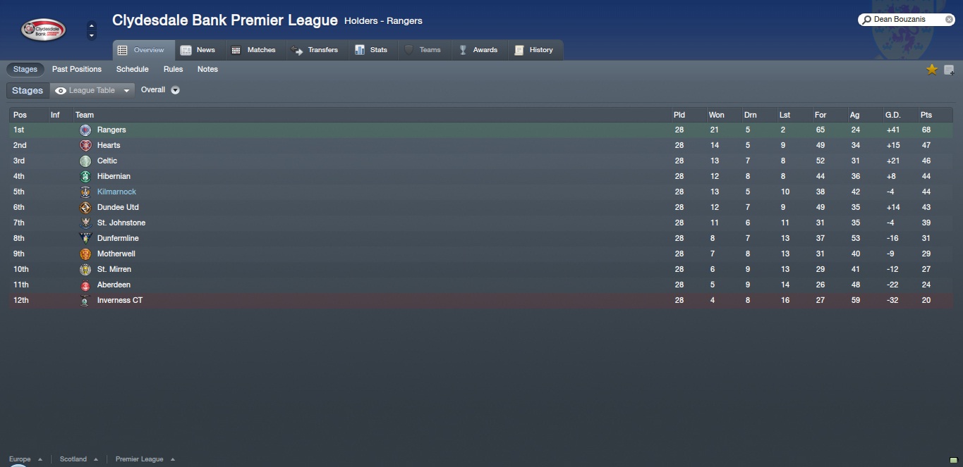 Even with the game against Rangers this month I still believe it could be a very good month with us. The cup game at the start of the month should definitely provide some momentum going into the league games and hopefully that will help the team regain its start of season confidence. The leage now seems a lot closer, from 2nd down to 6th anyway as Rangers still seem to be running away with it.