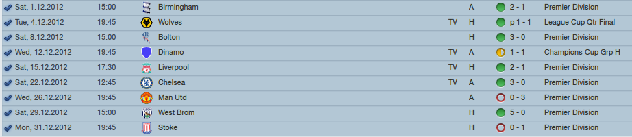 December was a weird month for us as played 9 game and unfortunatley we got our first and second losses in the league but also got some decent wins and qualified for the league cup semi final. Here are the results: