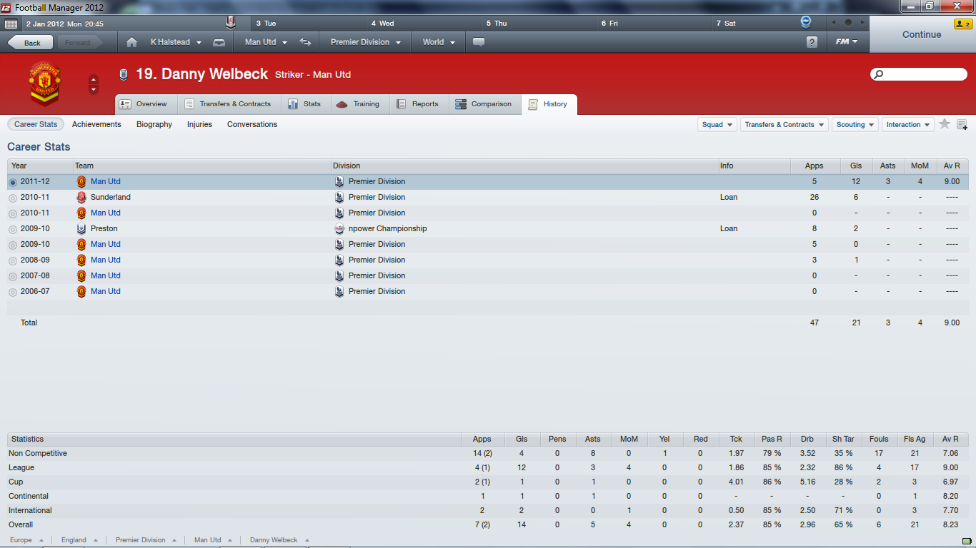 pfft im better, put me in the squad i would have had in 10 appearances 3 goals but 21 assists. i wouldnt assist to welbeck though. i wait for the likes of evra to get into the penalty area then i put in a good pass/cross/chip/lob/time travel, so they can score.