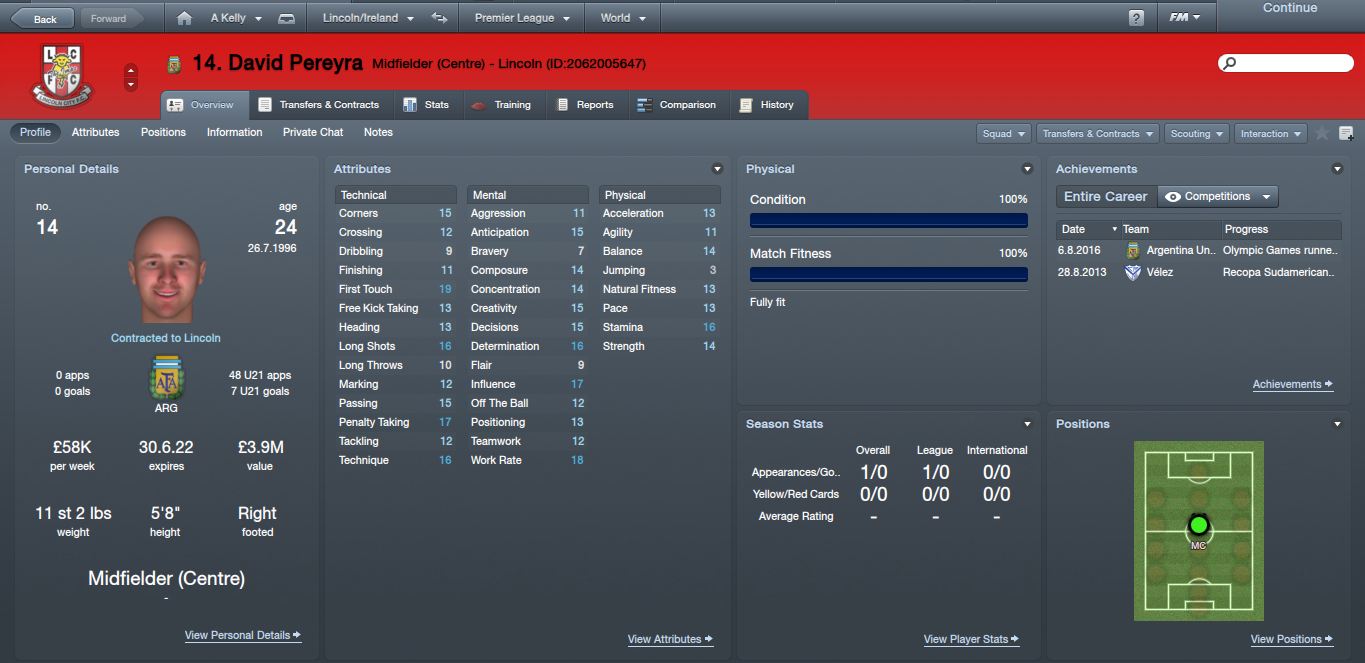His stats did prove he has potential but was going to need too much effort in training and I didn’t really like his attitude so $300k offer from Crystal Palace couldn’t be turned down, selling him proved to be a unpopular decision with fans and board but I thought it was the right decision for both me and him.