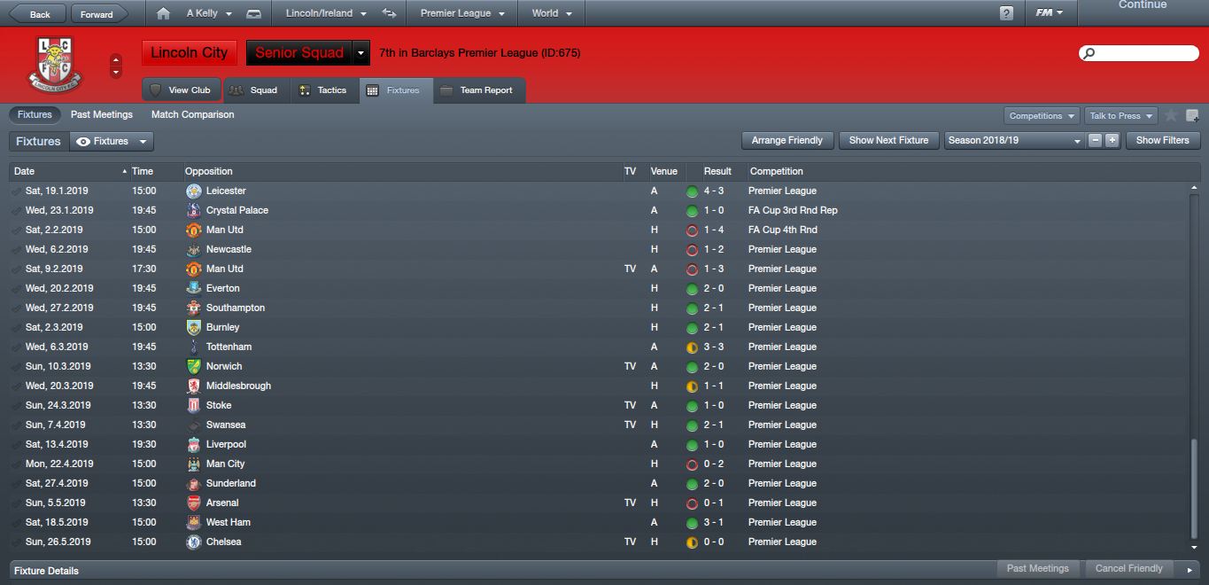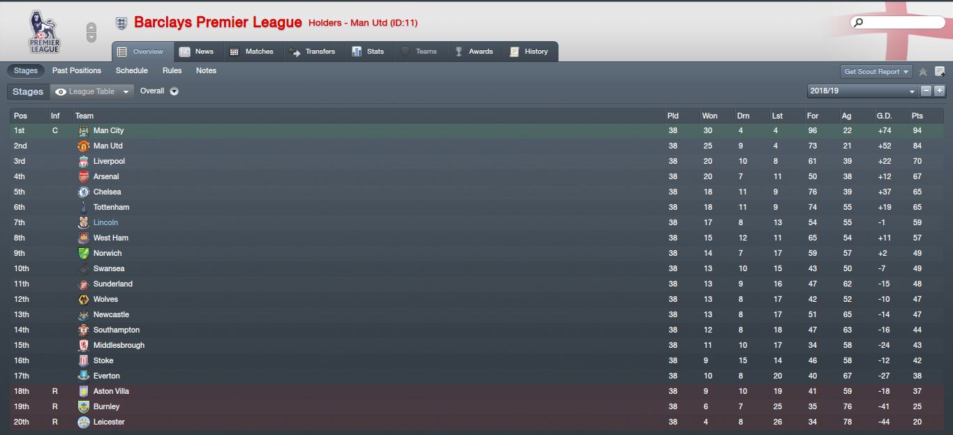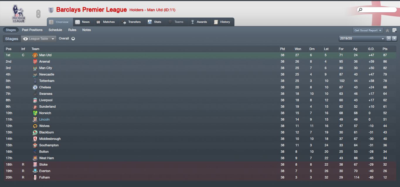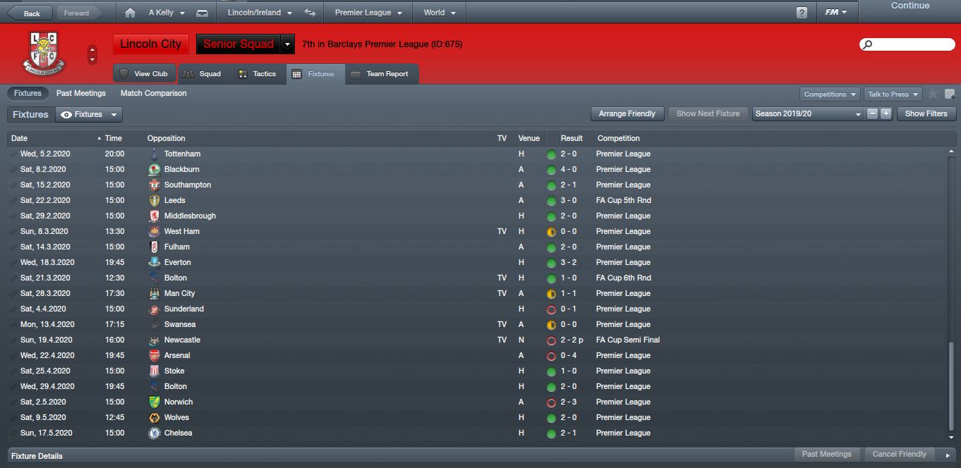 Sadly enough I didn't get Europa League football as Sunderland who finished behind me won the FA Cup. Probably a blessing in disguise.