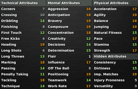 The following is a list of the top five Centre Backs in Football Manager 2008, the players are arranged into two catagories, Current Ability and Potiental ability.