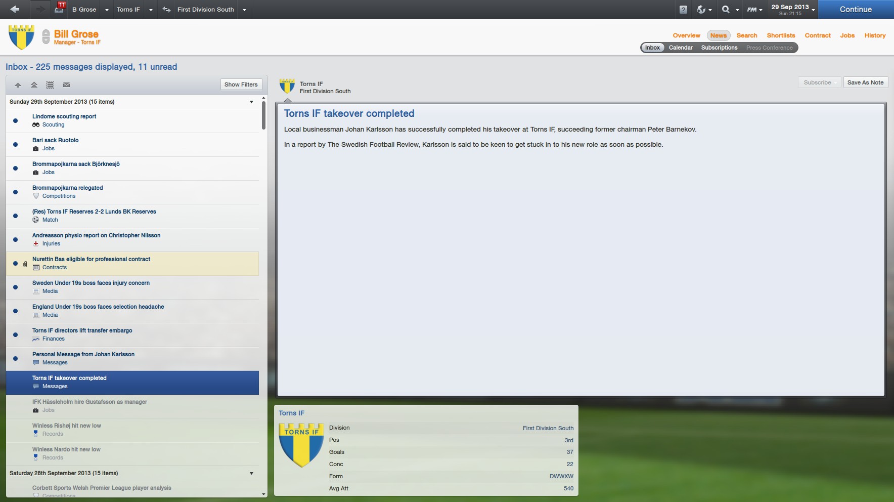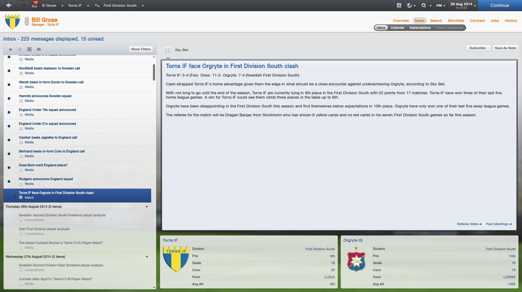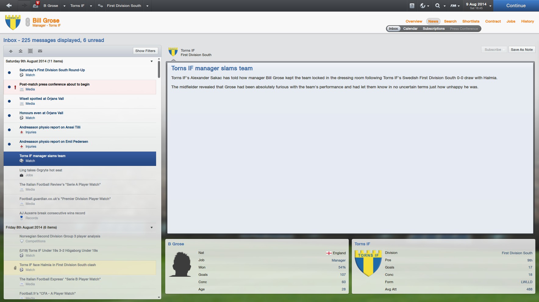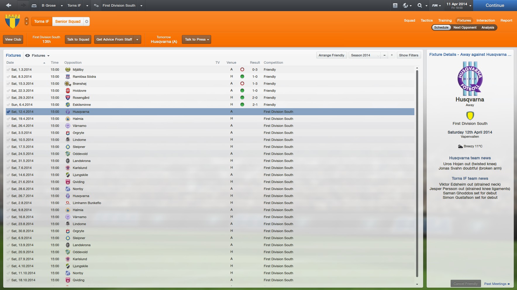 I would like to start this update by stating that I am no longer enjoying life in charge of Torns IF and at this stage I am unsure if I will accept a contract renewal for the 2015 season. I am growing increasingly frustrated by my team's inability to score when they should and by our league position which has been all over the lower half of the league for most of the season so far.