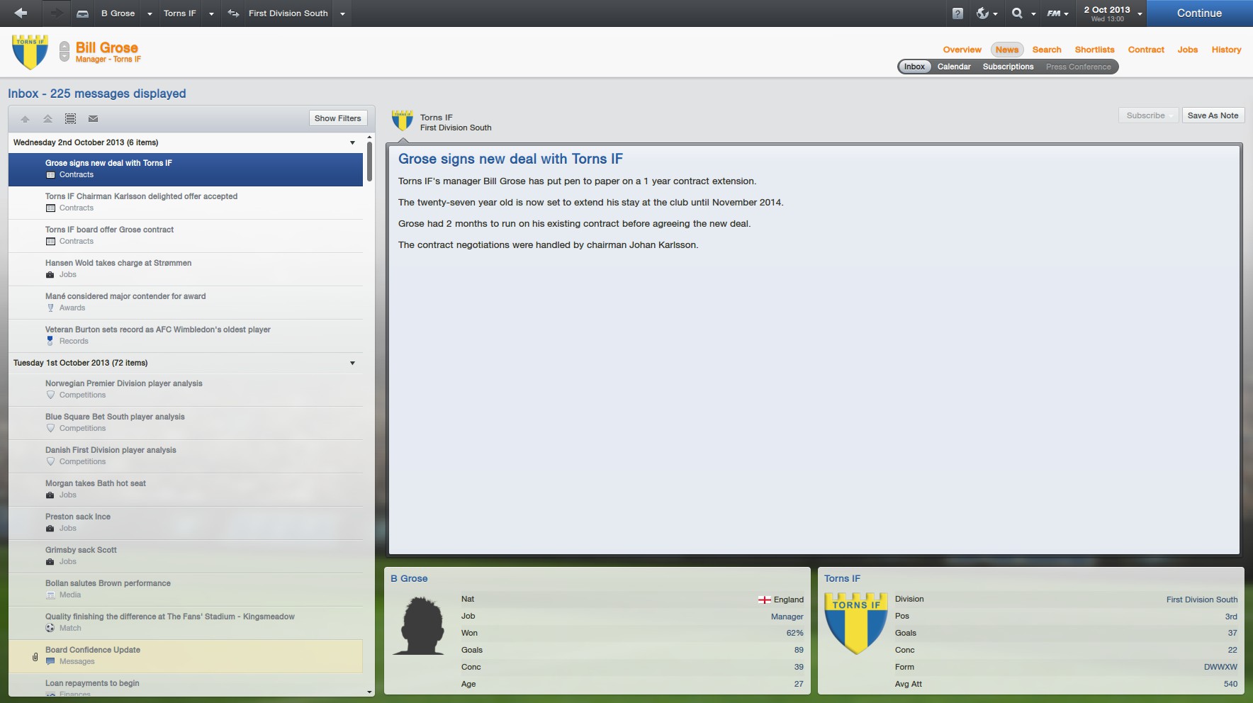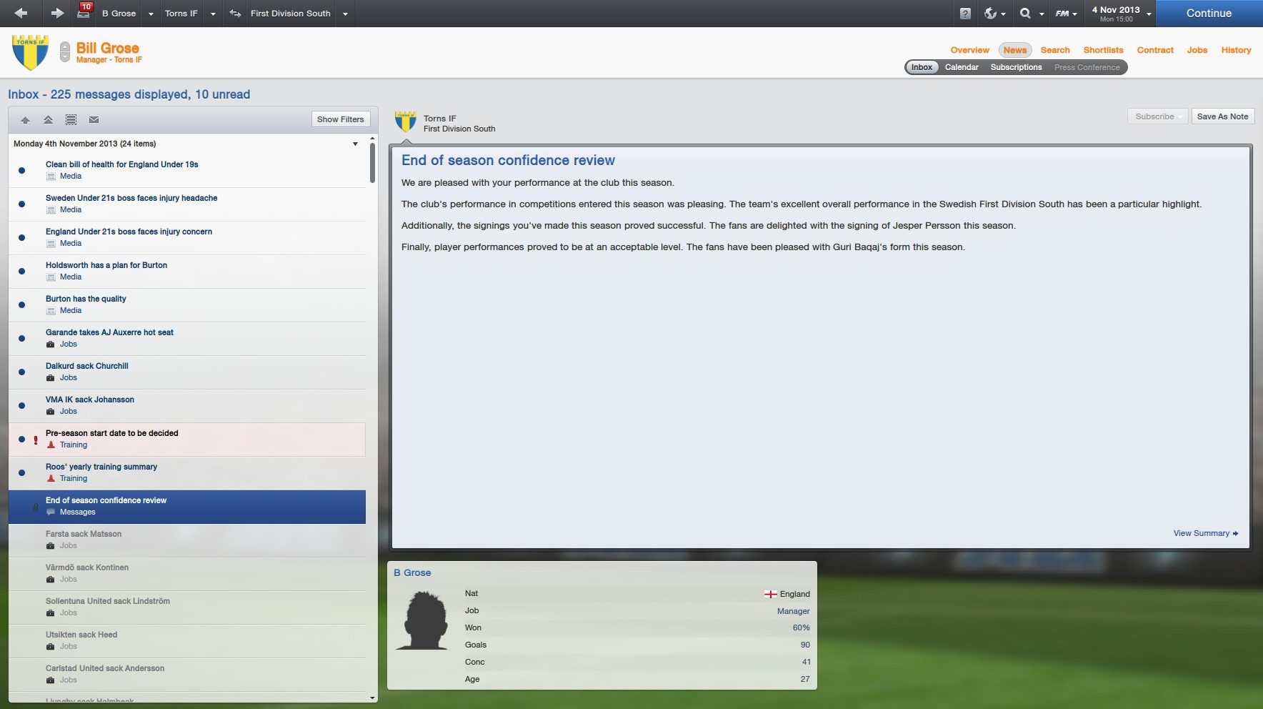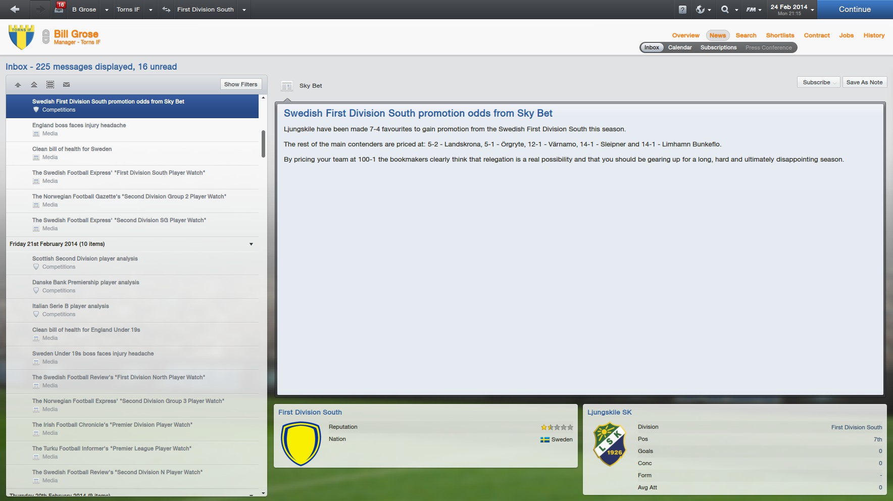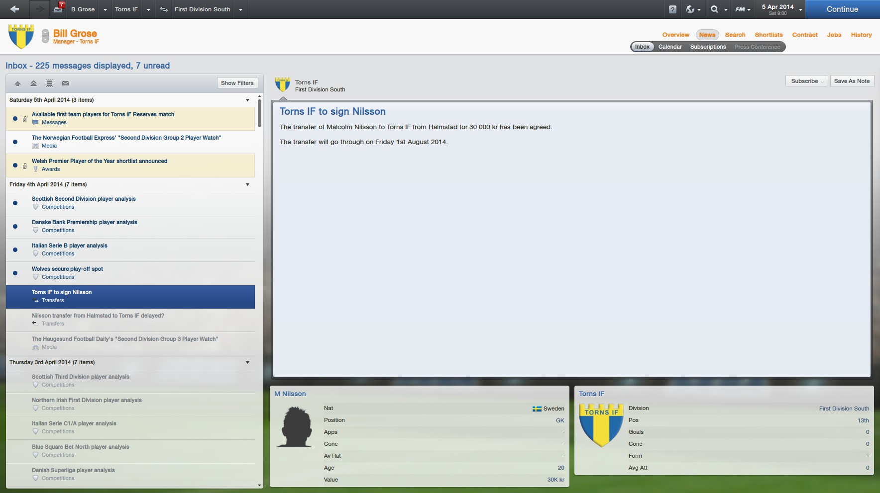 I would like to start this update by stating that I am no longer enjoying life in charge of Torns IF and at this stage I am unsure if I will accept a contract renewal for the 2015 season. I am growing increasingly frustrated by my team's inability to score when they should and by our league position which has been all over the lower half of the league for most of the season so far.