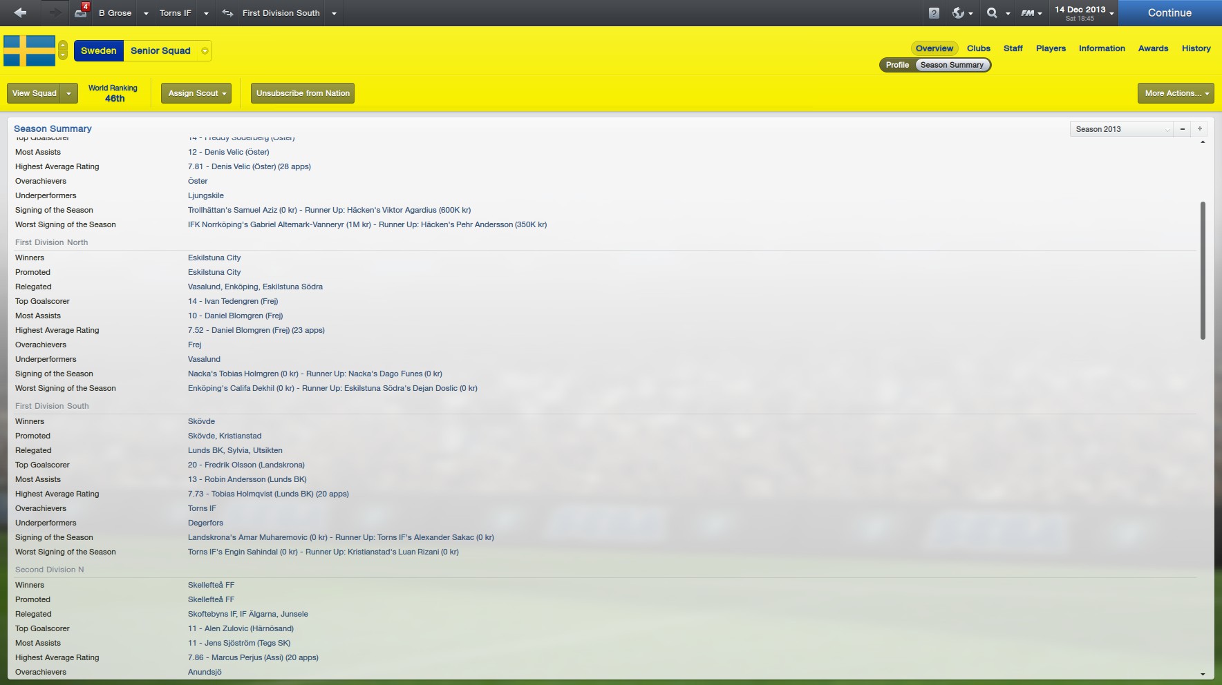 2013 was our 1st season in First Division Sodra and we surprised everyone by finishing 5th in the league, we still had a chance at 2nd on the last matchday but things did not go our way. We made several very good signings in 2013 and this helped the club a great deal. Once again we were the league's overachieving team but unfortunately had the worst signing of the division in Turkish DC Engin Sahindal.
