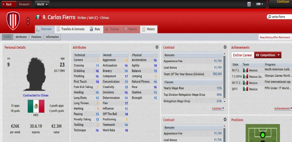 I have always had a soft spot for a little mexican striker- Hernandez, and the thought of having Fierro alongside him was too mouthwatering i decided to get rid of all the strikers, save hernandez, and promote a few from the reserve squad.