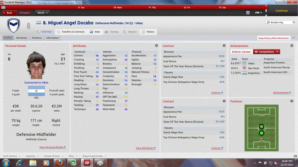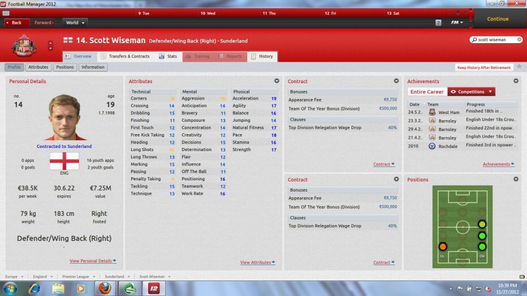 Then i discovered a 21 years old regen striker by name Gyles Thompson who was on loan at another club...with finishing of 19 and acceleration of 20(screenshot tommorow). This pacey striker will definitely compete with fierro for a starting place this season.....i had my gameplan figured out, the only thing left was the transfers, hopefully they'll go in my favour...