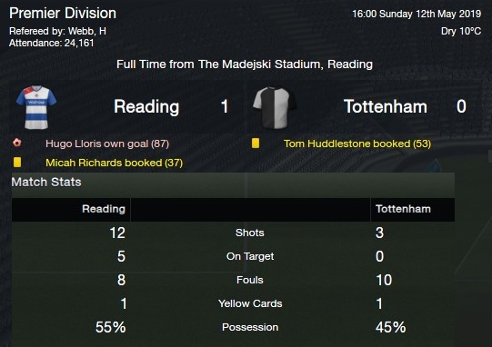 3RD GAME LEFT READING 1-0 TOTTENHAM-never did I expect to win this game, Tottenham always beat me, but everyone is bang in form, in a strong and consistent first 11, a team of warriors, hunting down Europe I hope. MASSIVE WIN. MASSIVE.