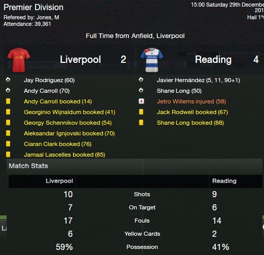 LIVERPOOL 2-4 READING-well my god, I didn’t see this coming, but we travel to Anfield and pull off a shocking and well deserved 4-2 win. Delighted! CHICHA HAT TRICK!