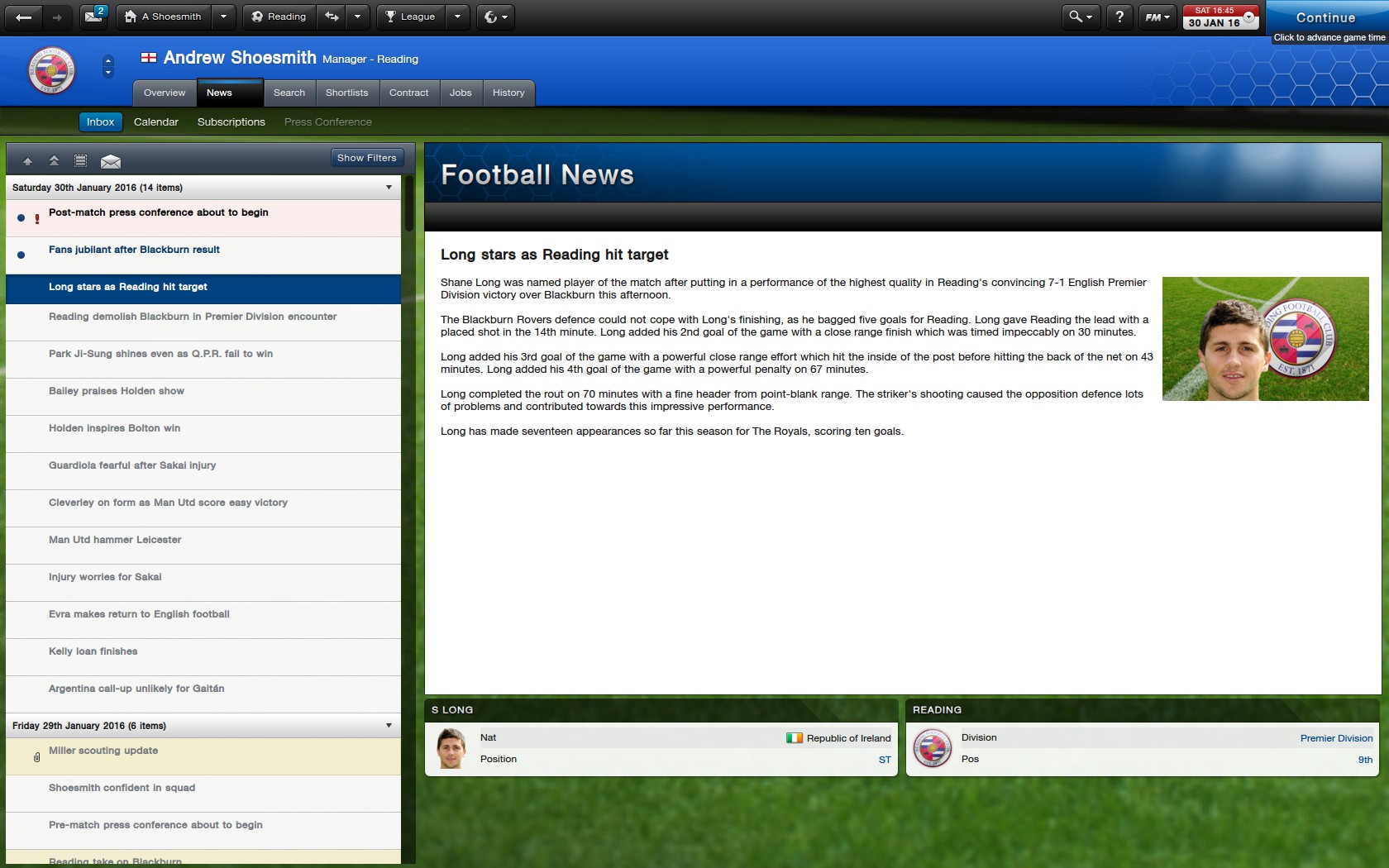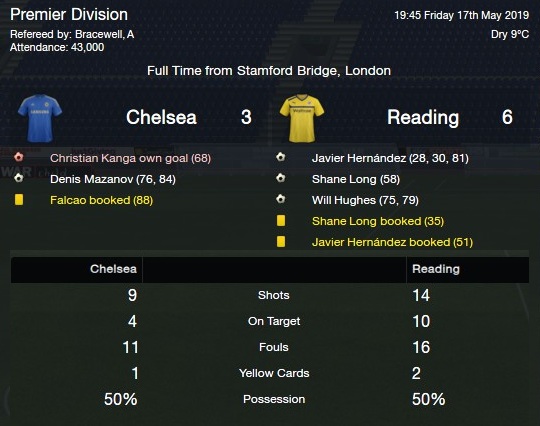 2ND GAME LEFT CHELSEA3-6 READING-I ACTUALLY AM LOST FOR WORDS. This is the biggest result in our history. Away to Chelsea, who sit 3rd in the league, we score 6 bloody goals, and although we let in 3, we romp home. Everyone in the team is on fire, Hernandez can’t stop scoring, Will Hughes is back in the team and banging them in, everyone is playing amazing, this is our best run in my 7 years here, I am actually over the bloody moon. WOOOOOOOOOOOOO