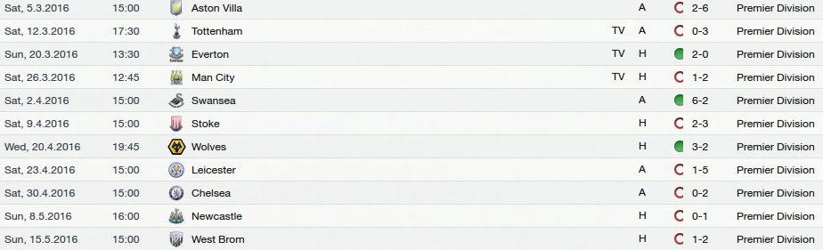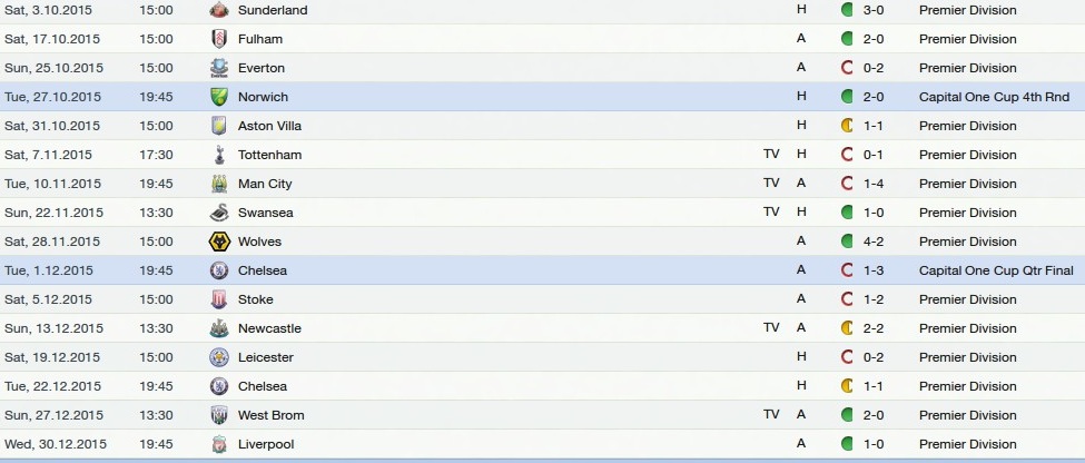 After our fantastic start, we totally go off the boil and slide right down the table to 8th, winning one game in 9 fixtures. TOTAL SHITE!