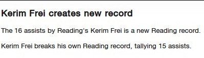 KERIM FREI breaks the Reading assist record in the league, and its only February. He had set the previous record too, and it will only get higher.
